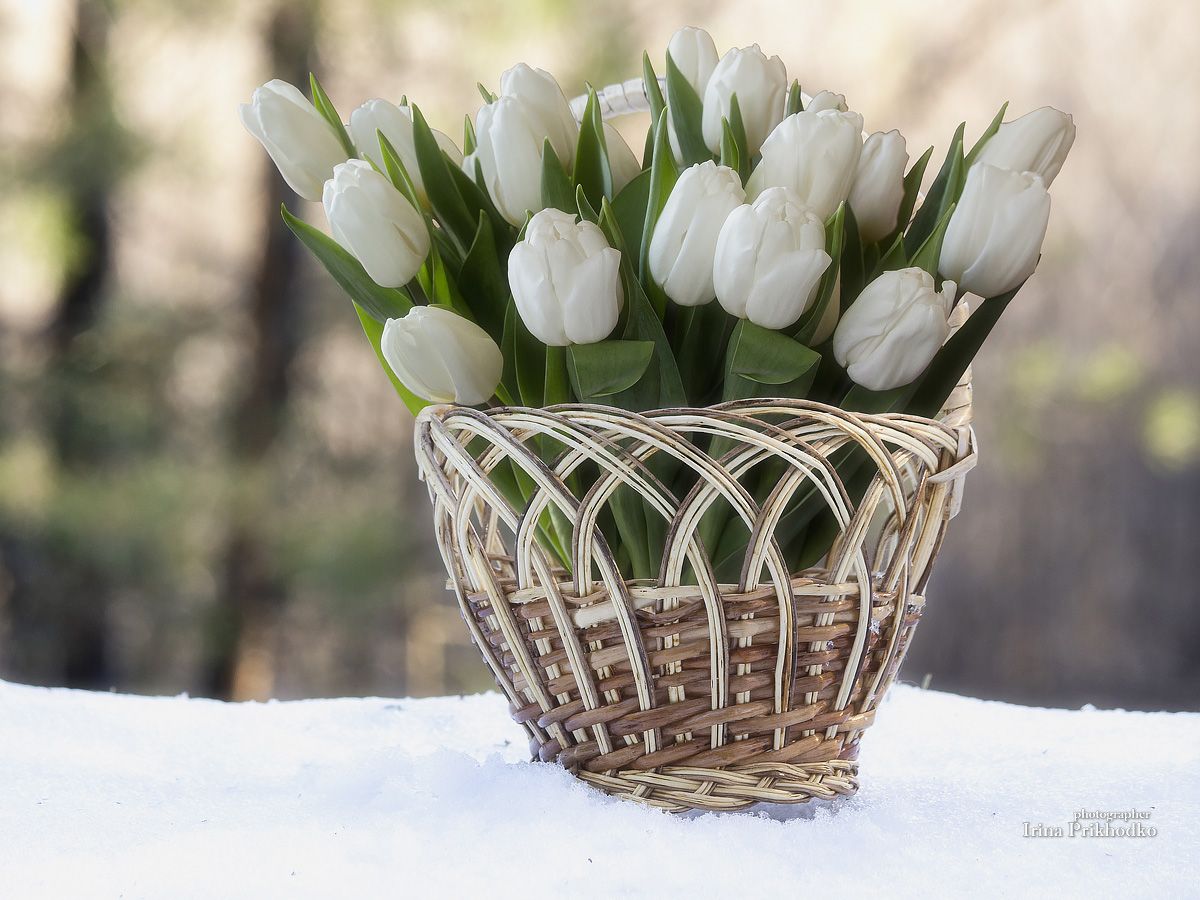 натюрморт, пленэр, корзина, букет, тюльпаны, снег, Приходько Ирина