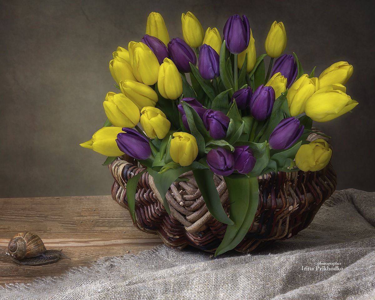 натюрморт, цветы, тюльпаны, букеты, корзина, Приходько Ирина