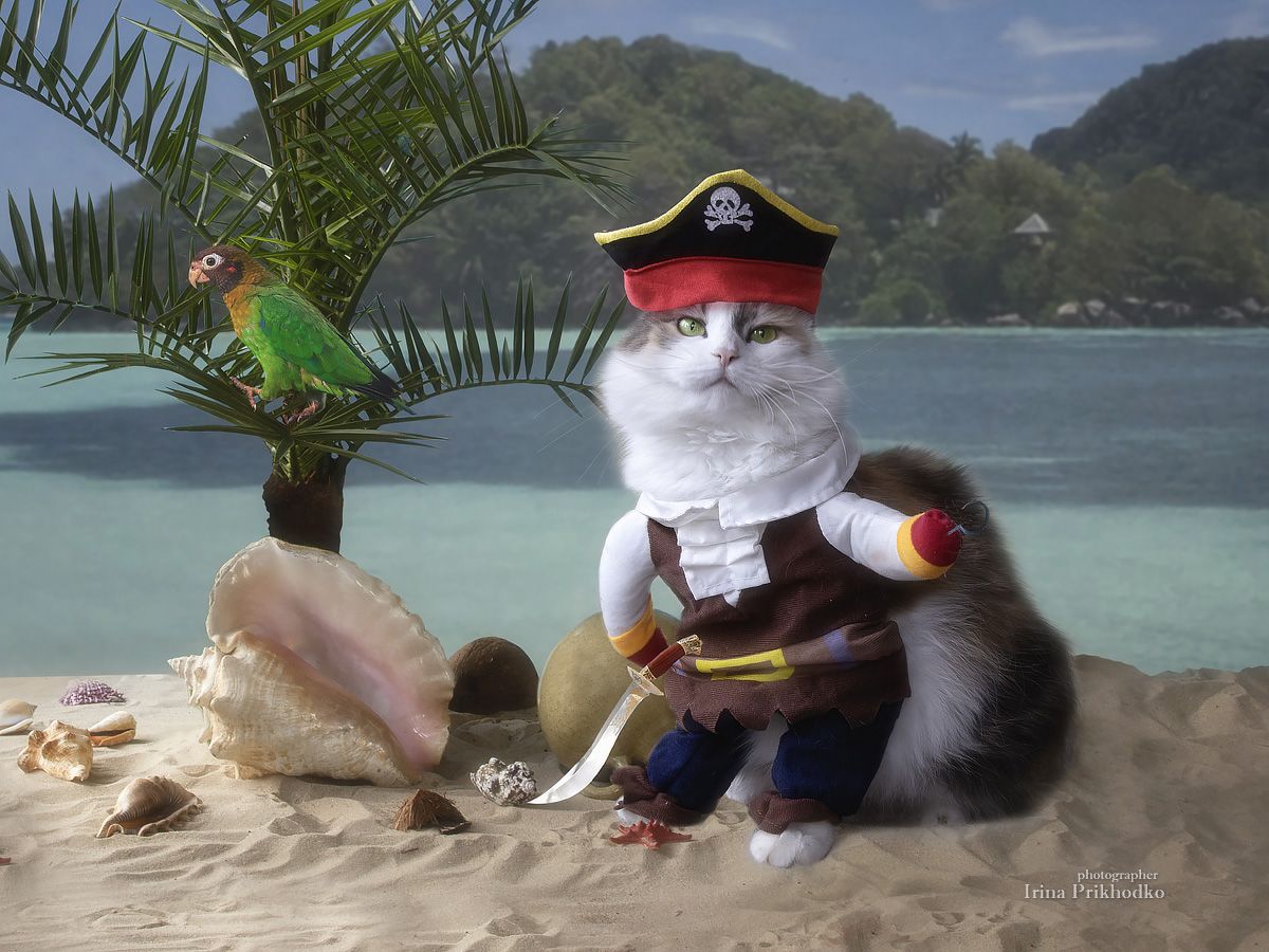 постановочное фото, кошка, марионетка, пират, морской берег, Приходько Ирина