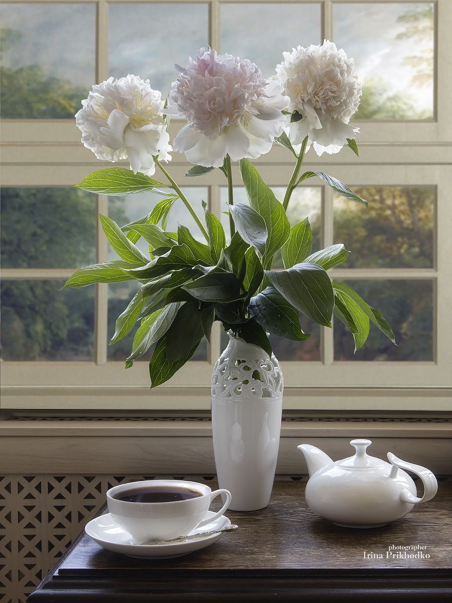натюрморт, цветы, пионы, букеты, чайный столик, Приходько Ирина