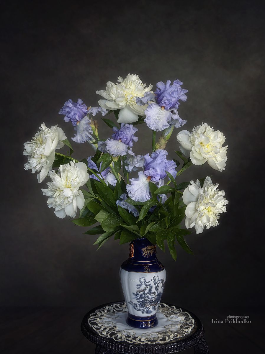 натюрморт, цветы, пионы, ирисы, букеты, Приходько Ирина