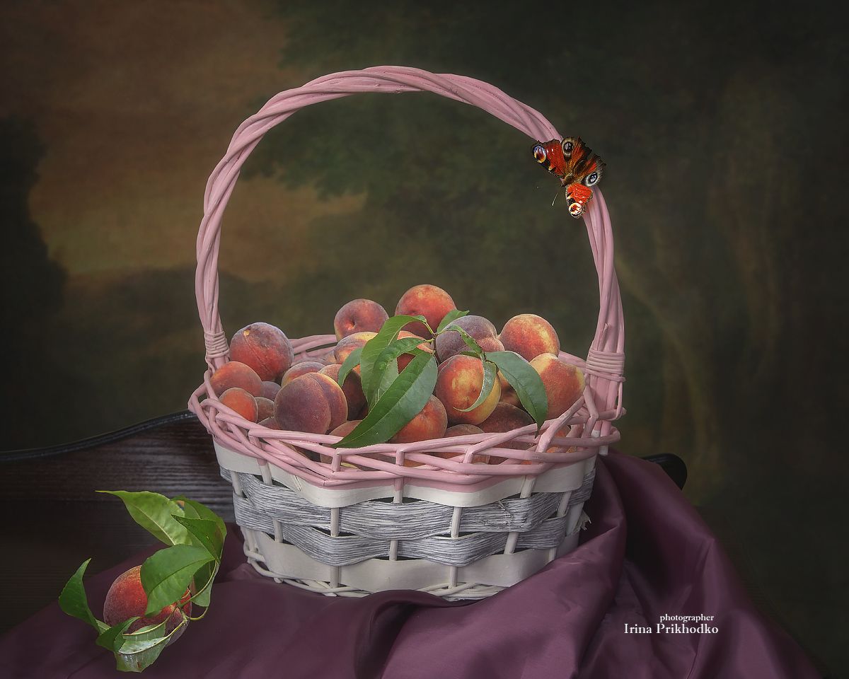 натюрморт, персики, фрукты, бабочка, Приходько Ирина