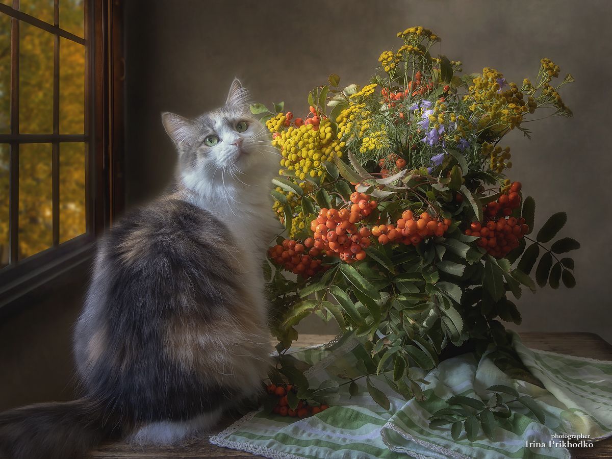 натюрморт, осень, букет, кошка, питомцы, интерьер, Приходько Ирина