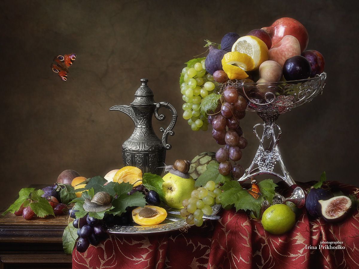 натюрморт, фрукты, ренессанс, винтаж, бабочки, улитки, Приходько Ирина