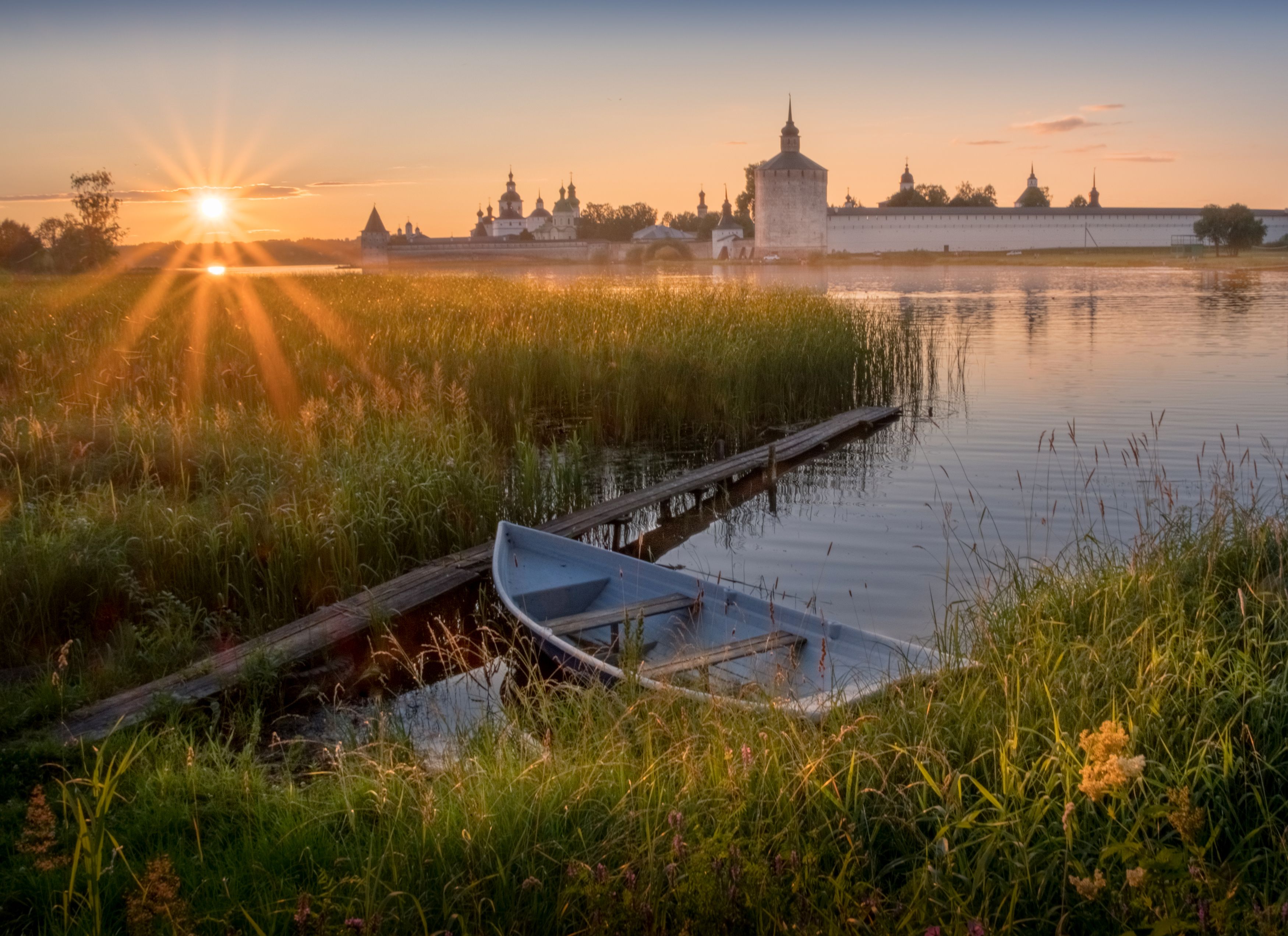 Похоже свежее фото из Кириллова:) Раньше лодка правее всегда была, а нынче хозяин переместил её ближе к мостку. Хотя может и ошибаюсь:) Симпатичнре фото! Понравилось!
