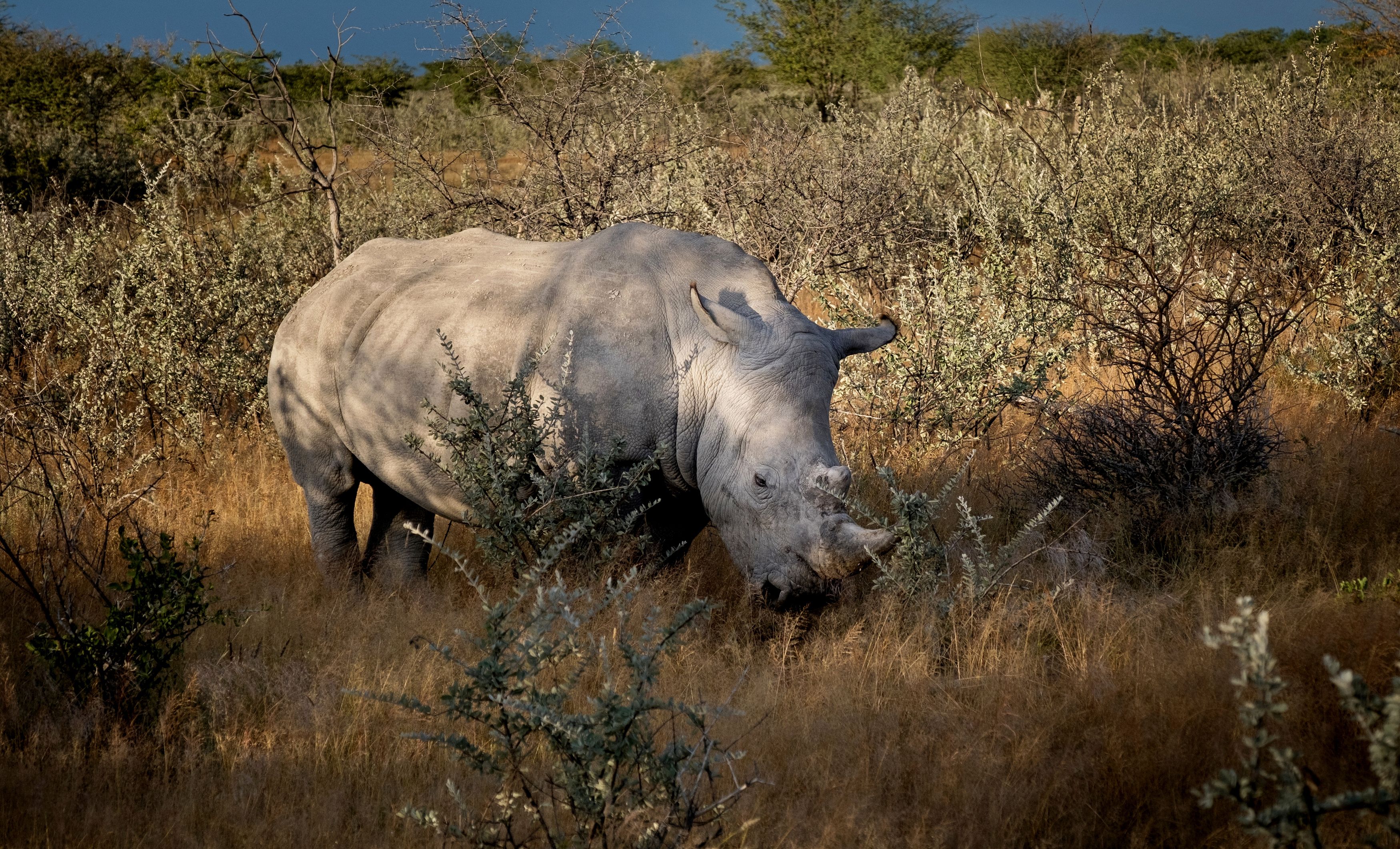 Намибия. Национальный парк Этоша. Носороги очень чуткие животные. К тому же они достаточно быстро бегают. Поэтому сделать снимки этих белых носорога было совсем непросто...