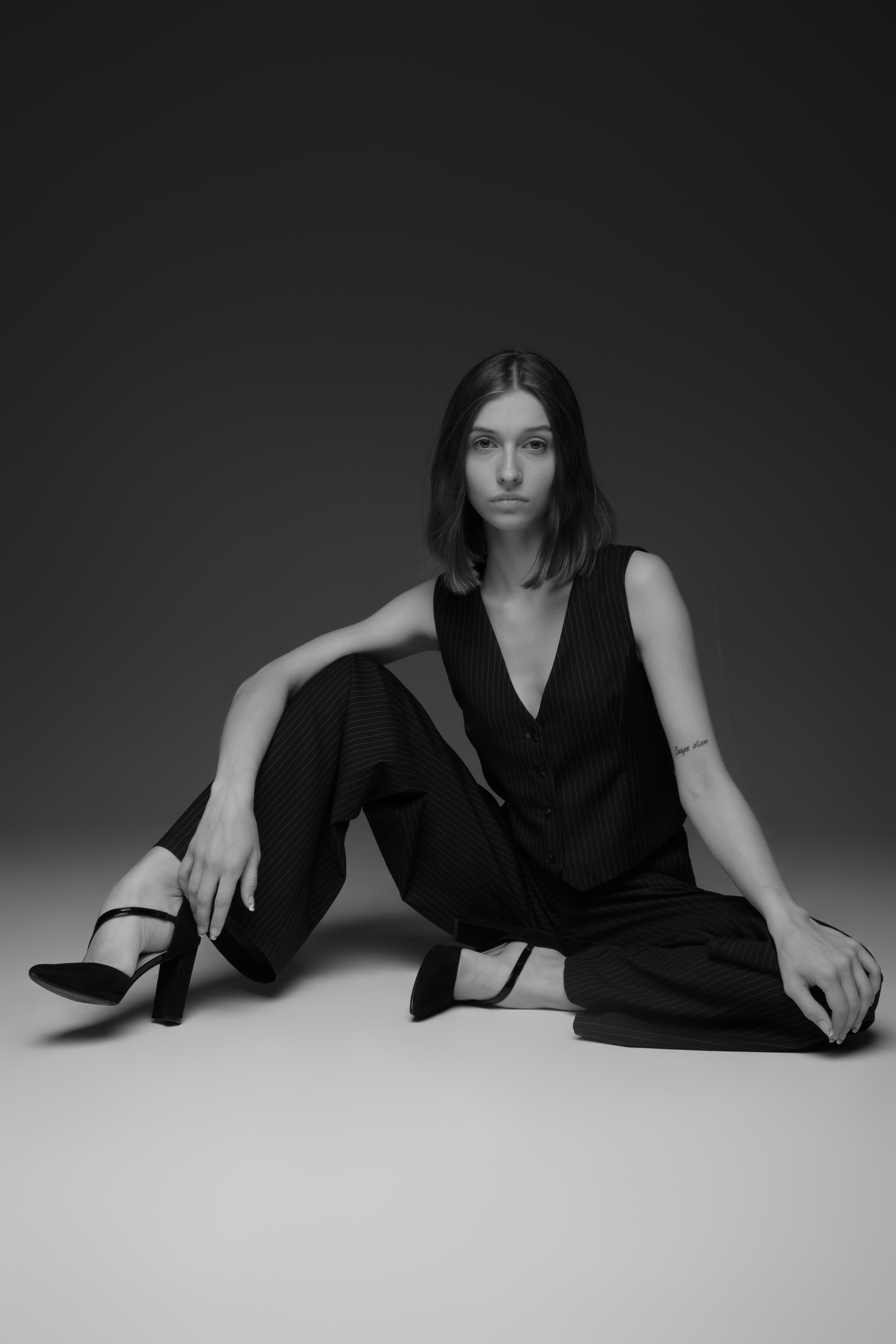 Сильная поза, чёткий свет — чувствуется, что Александр знает, как выделить фигуру на простом фоне. Модель сидит как будто не думая, но это — работа. И та тишина в кадре, которая не молчит, а говорит. 👌
