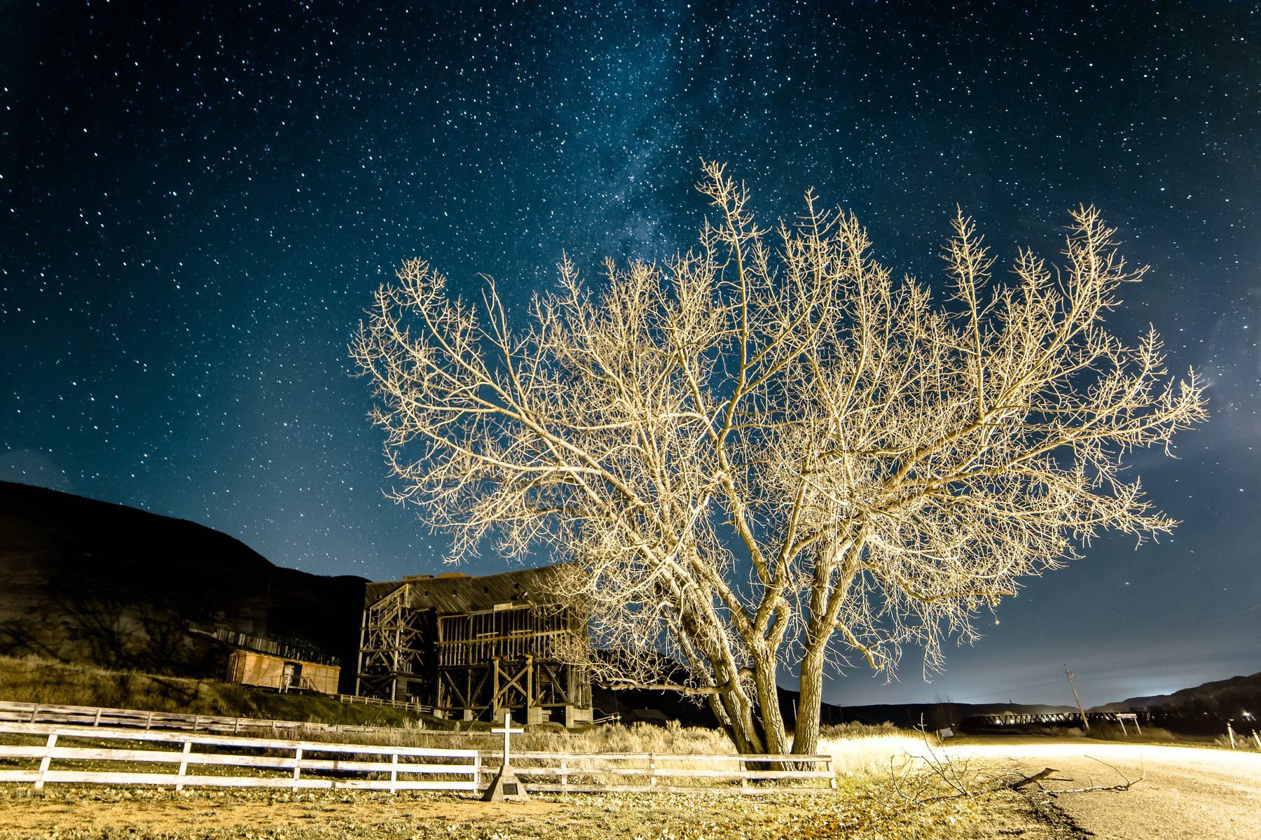 Безлунная ночь у заброшенной шахты в небольшом канадском городке Драмхеллер. Только одинокий фонарь давал немного света, окрашивая округу в мистический желтый свет.
