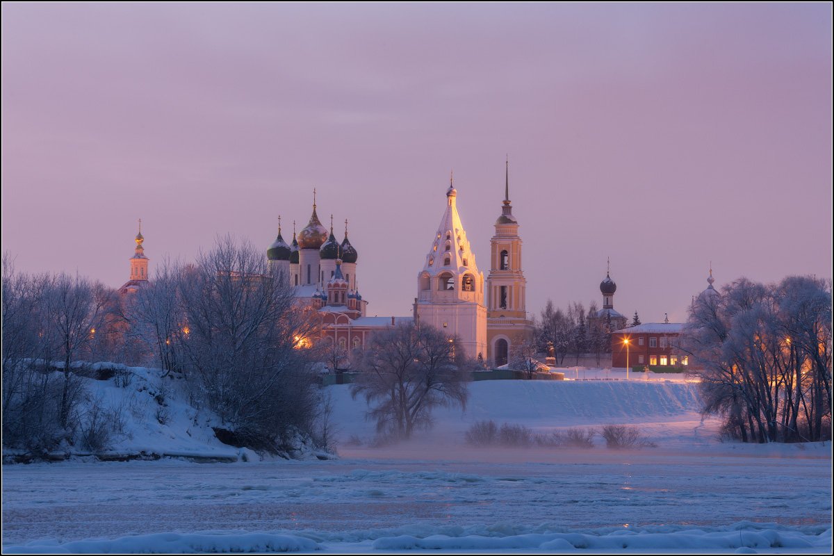 С берега - лёд очень тонкий и ещё не везде лежит. А точка известная, разве что пришлось уйти чуть дальше "за угол", чтобы закрыть деревом храм, который в лесах и обтянут сеткой зелёной.