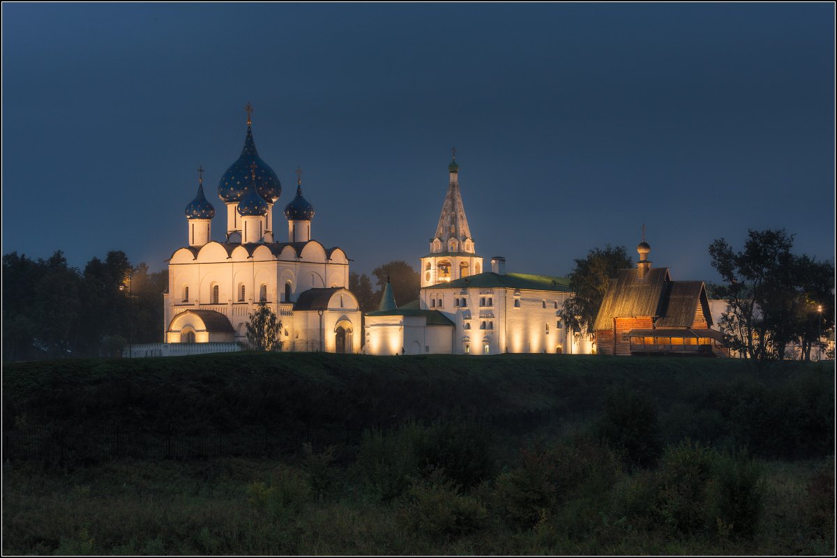 Архитектурный ансамбль суздальского Кремля — Рождественский собор, Архиерейские палаты и Никольская церковь.