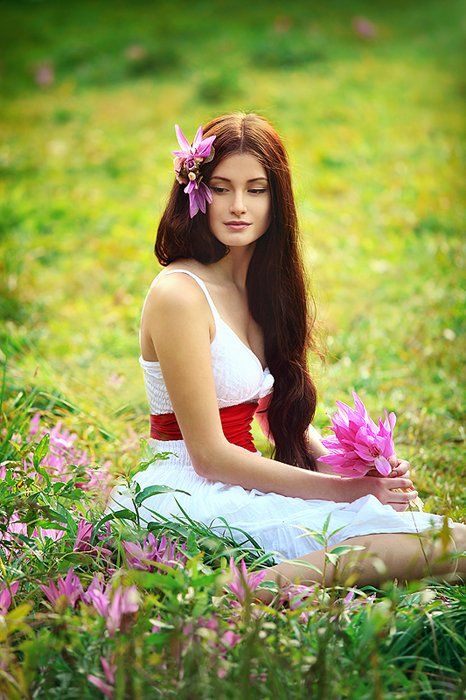 луг, лето, сон-трава, фиолетовый, цветы, девушка, Лия Мстиславская