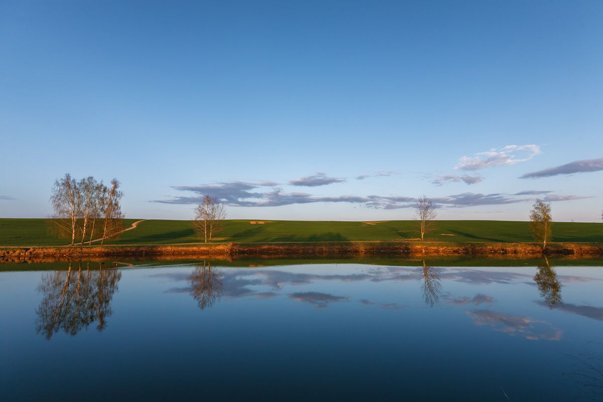 весна апрель вечер озеро вода поле облака, Карабинов Дима