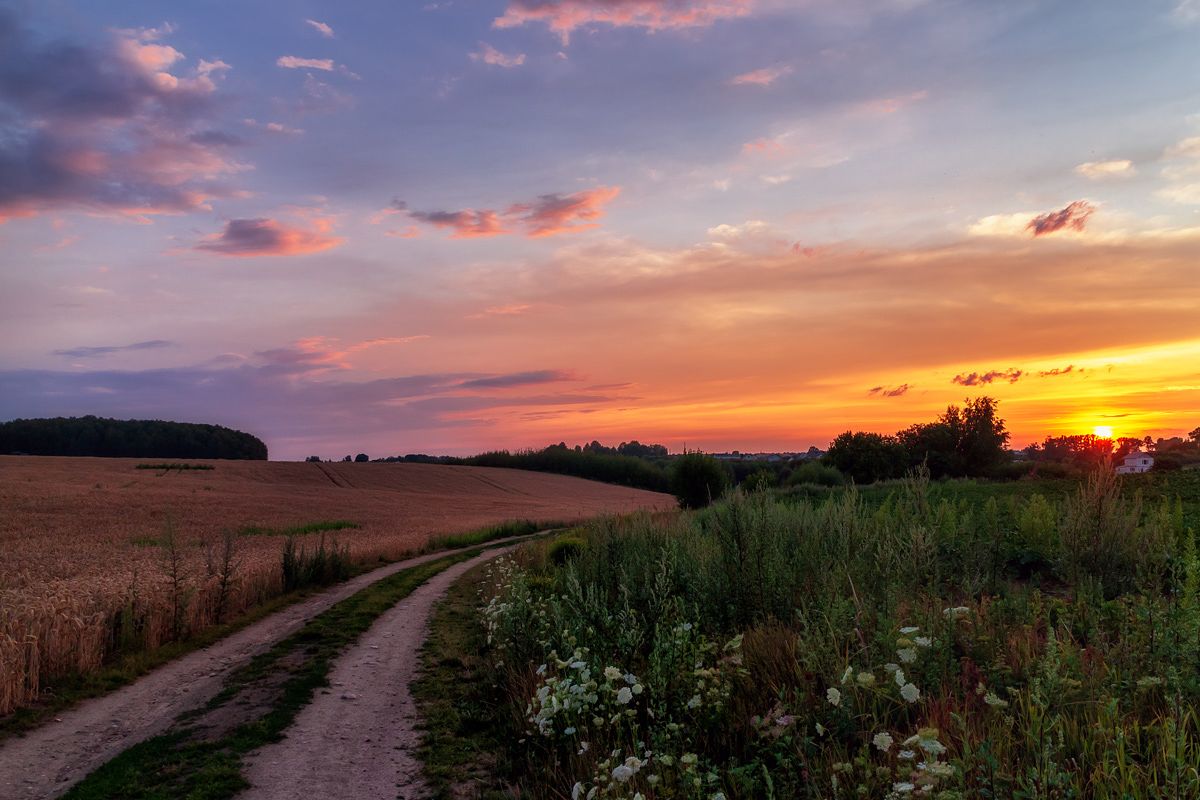 пейзаж закат вечер лето поле, Дима Карабинов