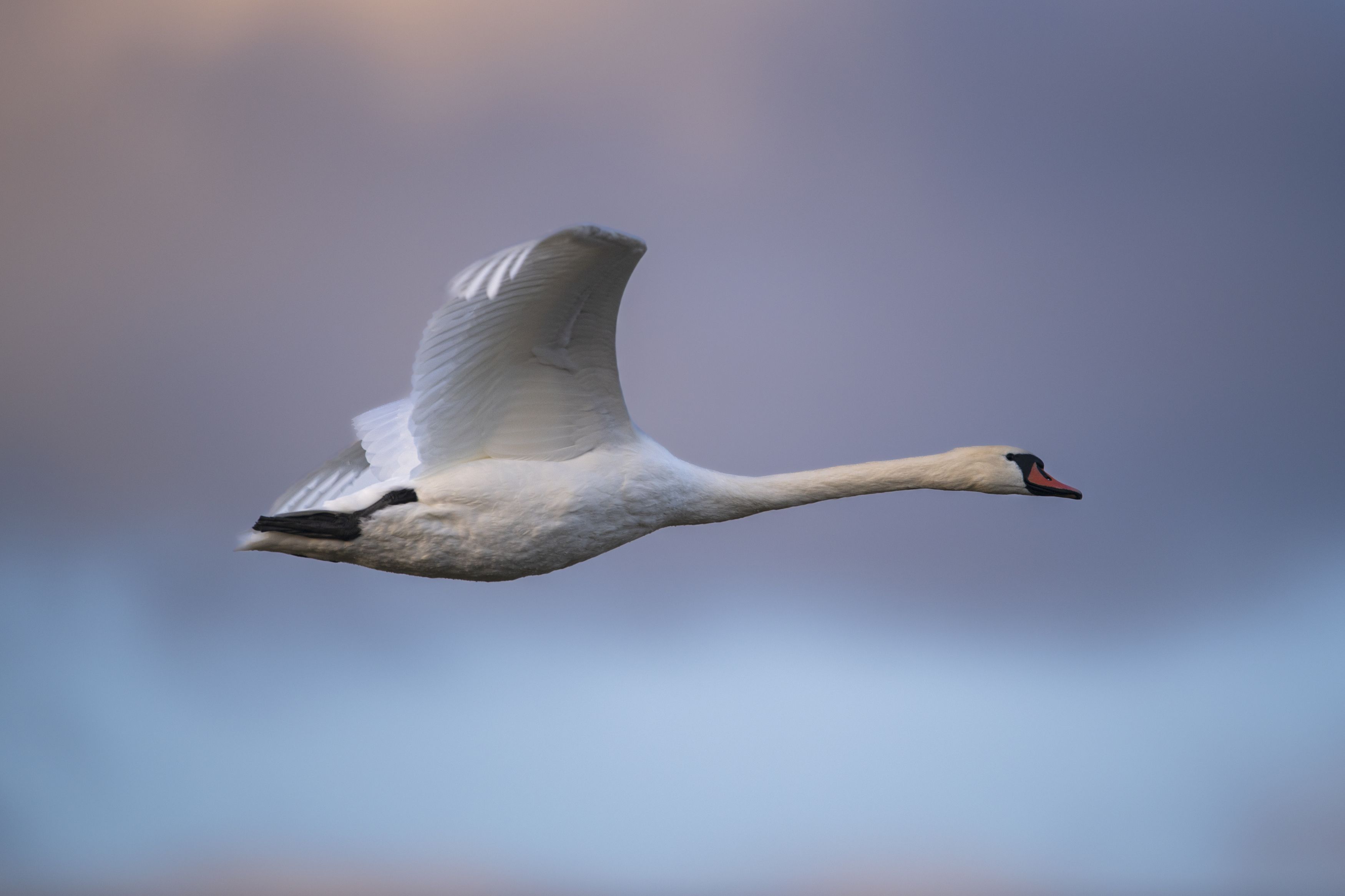 Лебедь шипун в полёте — грация и свобода осеннего неба 🦢💙