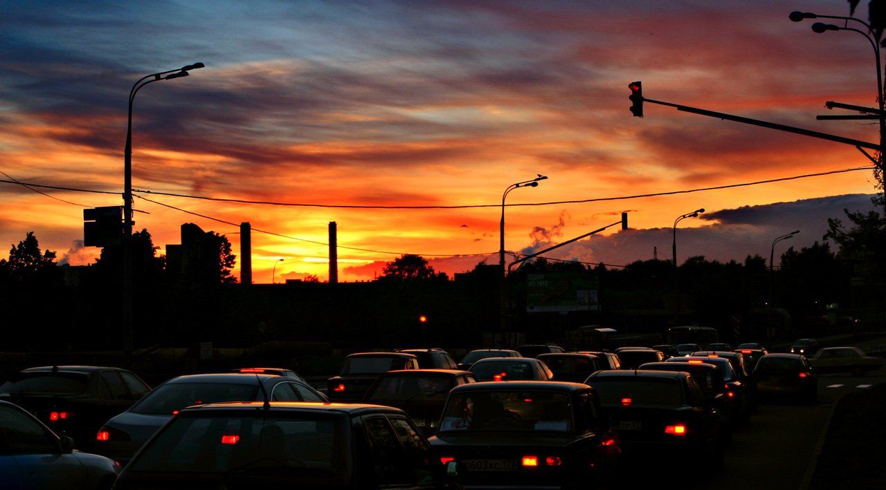 машины, закат, dimmm