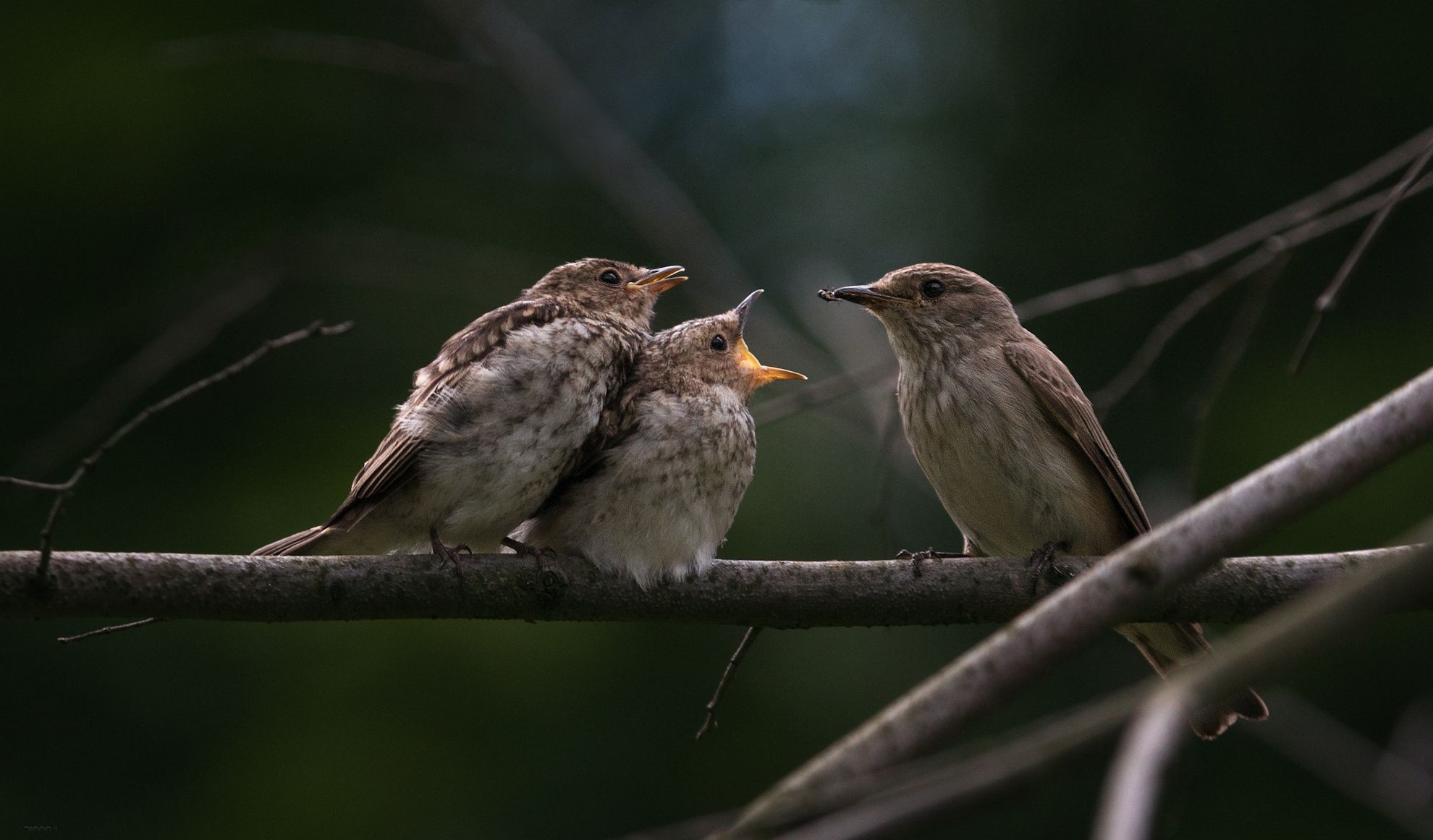 Серая мухоловка с малышами