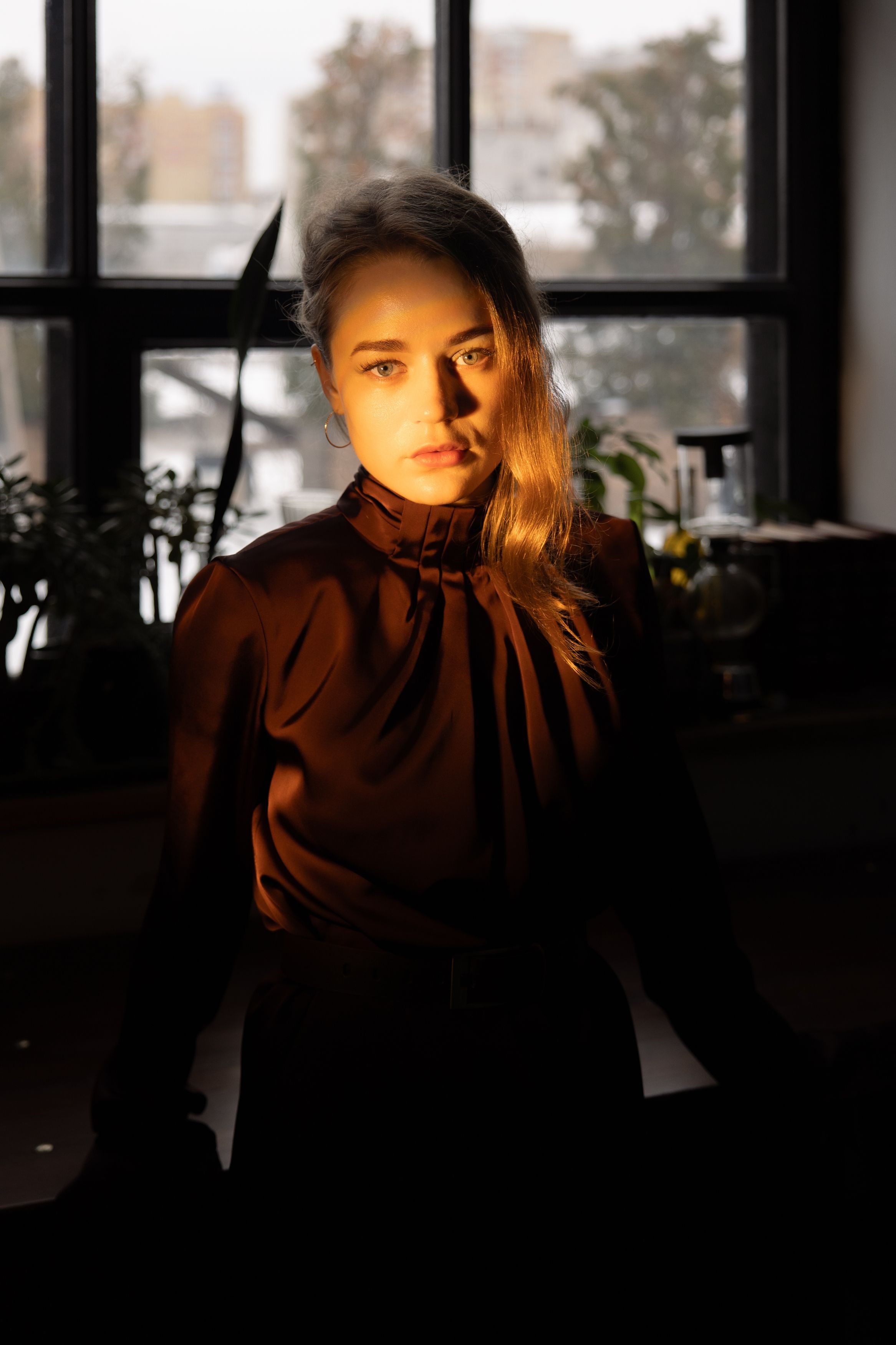 Свет мягко выделяет лицо, создавая глубину и акцент на выражении.