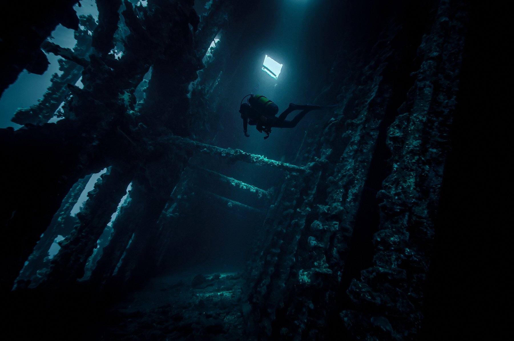 В действительности ничего опасного. Деревянная обшивка рэка за сто с лишним лет сгнила начисто. Остался только металлический каркас, разваливаться он пока не собирается, и заблудиться в трюме нереально)