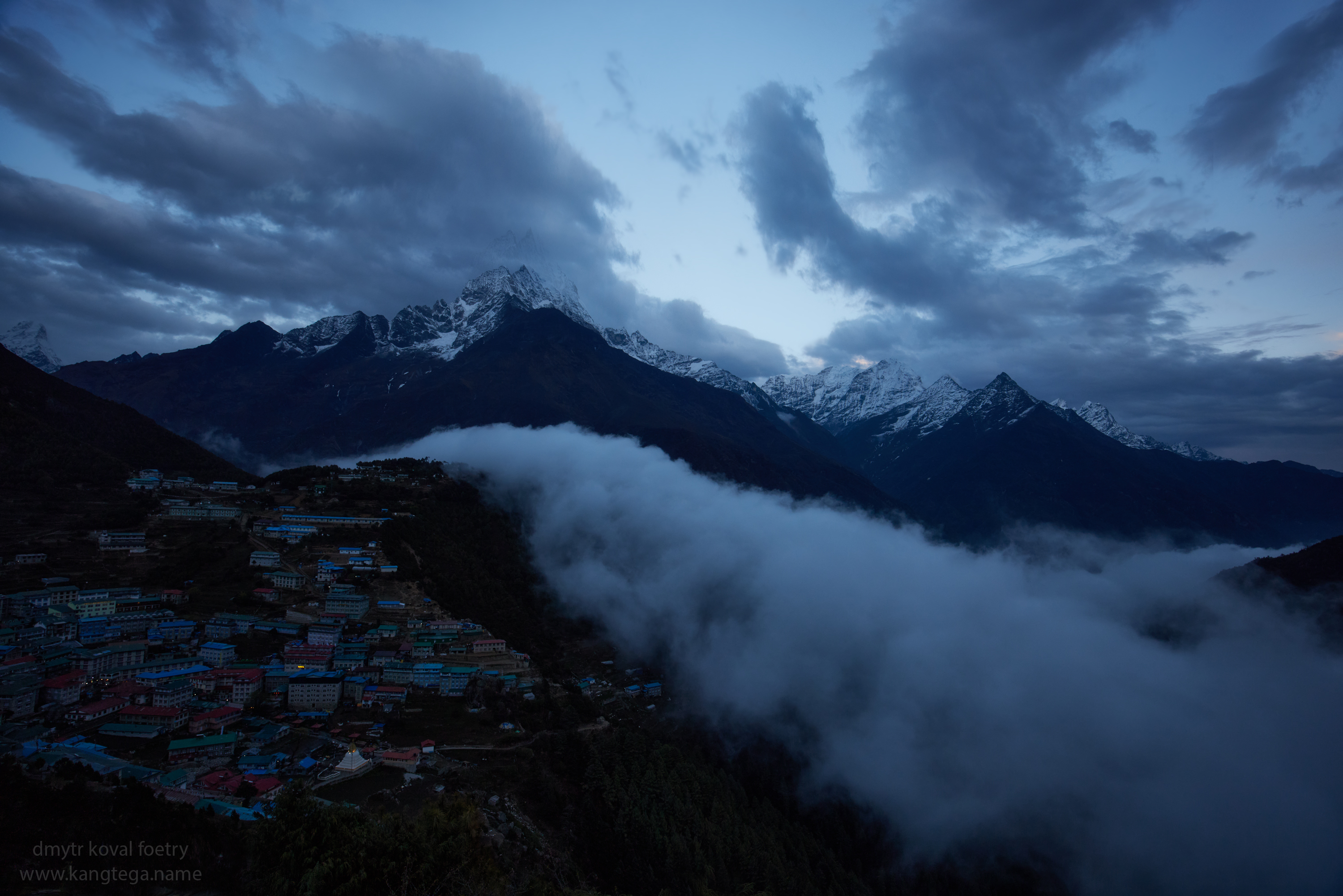 Вид на вечерний Намче 3500 м, и на Тамсерку над ним 6623 м.