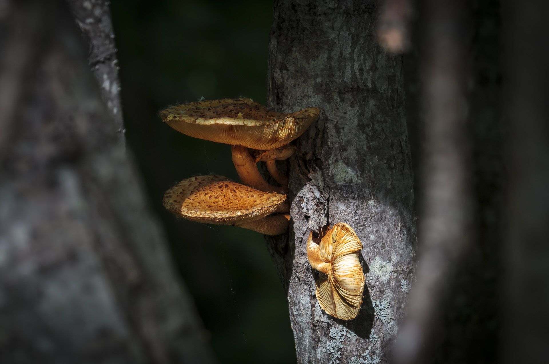 грибы, чешуйчатка золотистая, деревья, свет, цвет, Уткин Дмитрий