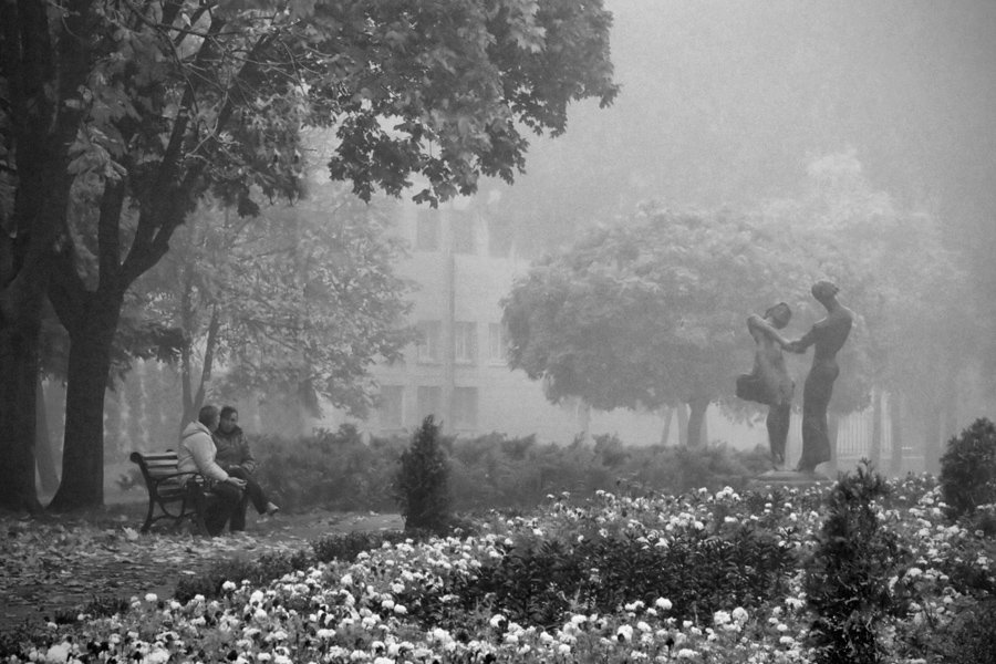 парк, туман,люди,памятник, Дмитрий Кротиков
