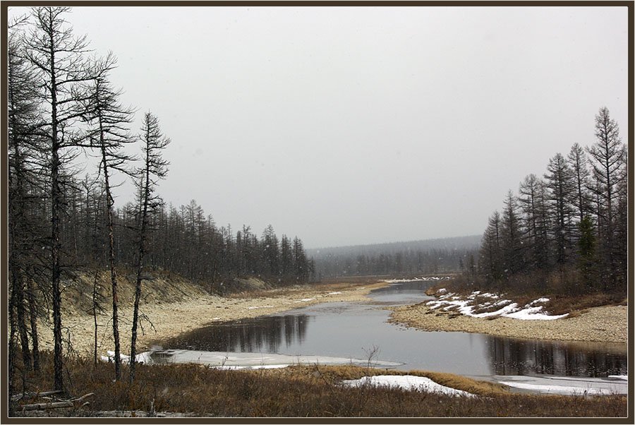 снегопад, река, тайга, весна, Солодухин Виктор