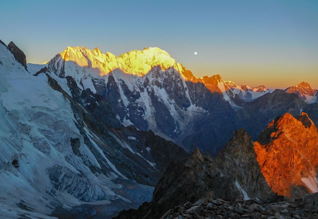 Безенги, на подходе к вершине Коштантау (5150м), вершины Мижирги(5020м), Дыхтау (5180м), Балкария, Кавказские горы, альпинизм...