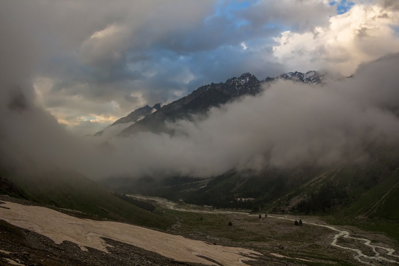 ущелье Адырсу, внизу база Уллутау (2400м), Балкария...