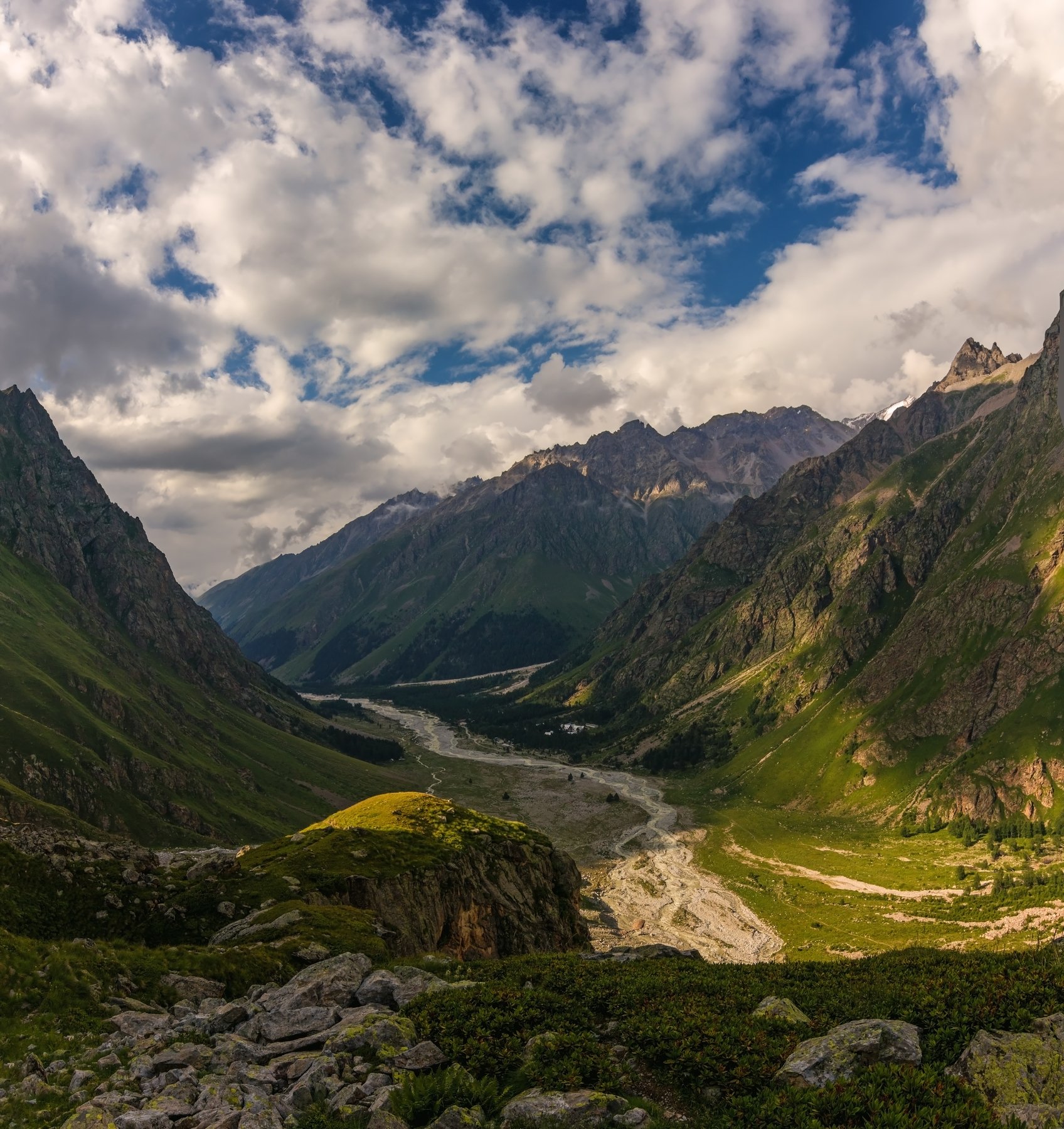 горы, река, кавказ, облака, Эстелла