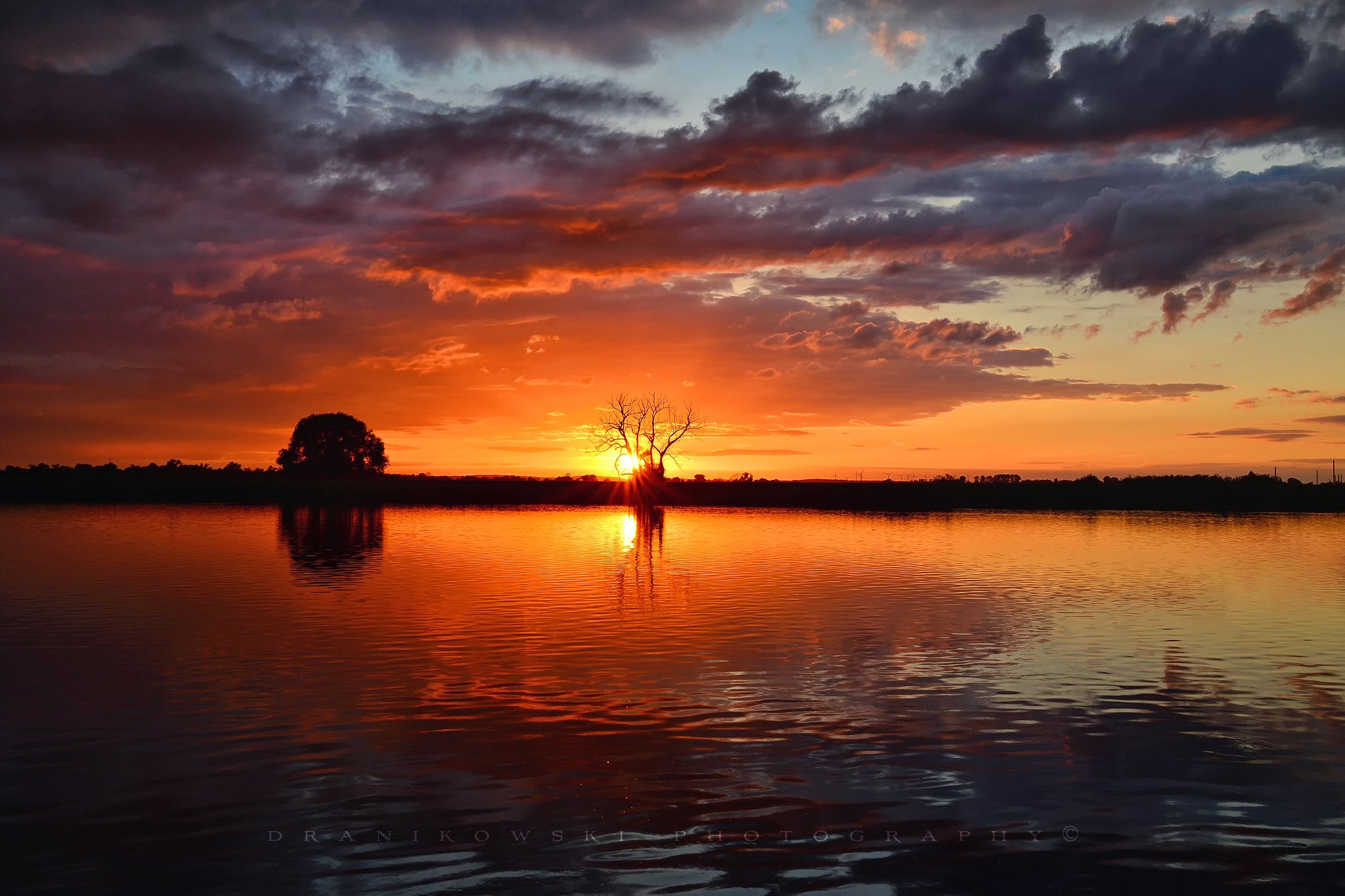 light odra river water sun sunset sunrise poland tree clouds mirror sunlight, Radoslaw Dranikowski