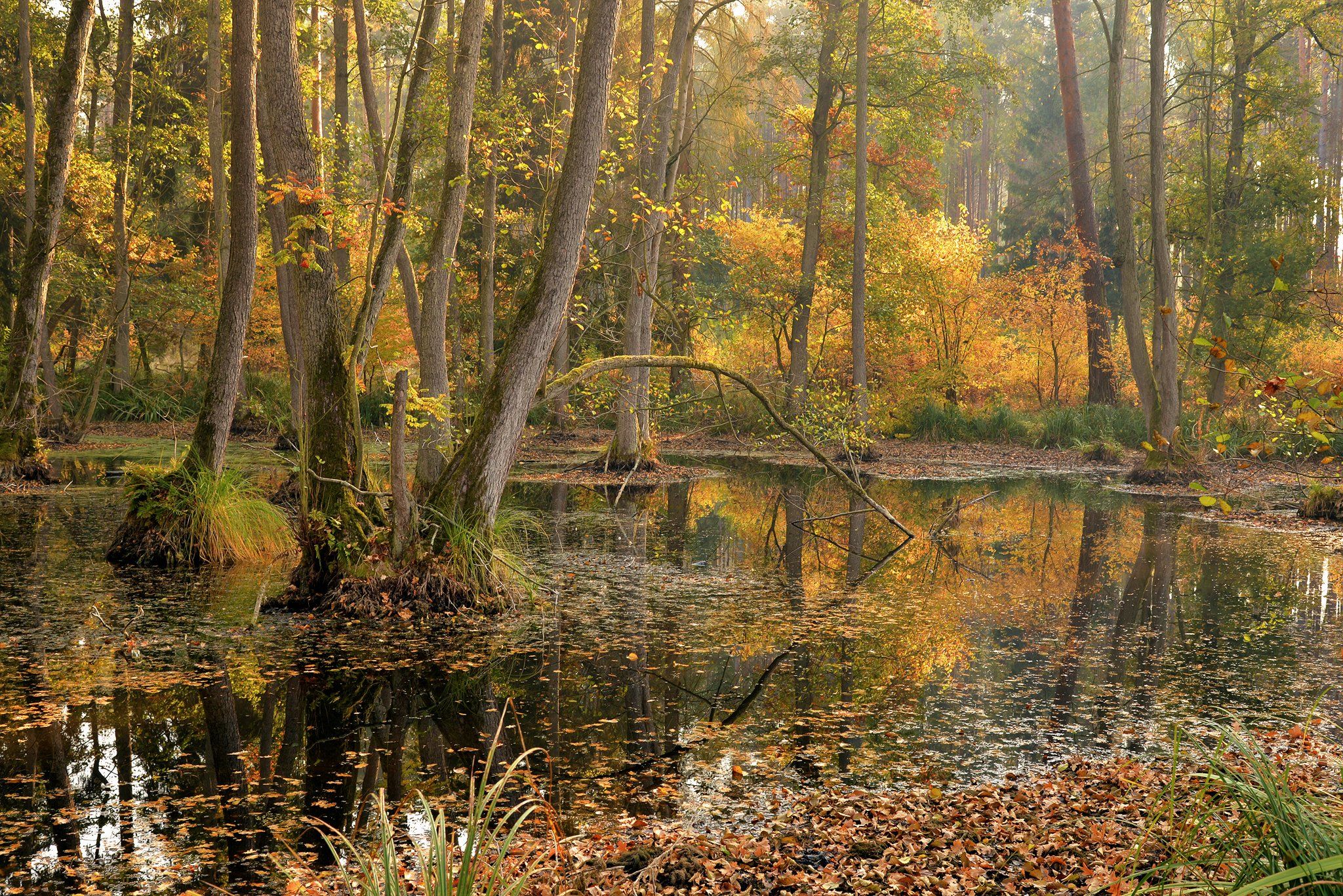 forest wetlands mist dranikowski autumn fall water small lake trees magic garden las, Radoslaw Dranikowski