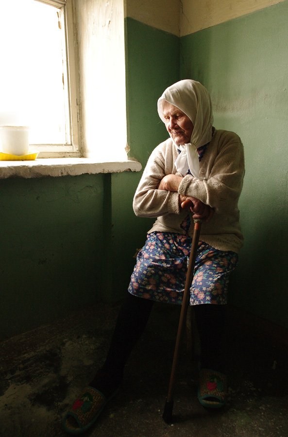 Собственно фото об этом, праздник есть, а праздновать не с кем. Одевается она празднично и празднует сидя в подъезде, поёт песни, общается в общем, на что сил осталось.