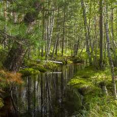 В центре Сибирского федерального округа, в междуречье Оби и Иртыша, находится Васюганское Болото самое большое в России и мире. Большая часть этой уникальной природной зоны находится на территории Томской области, захватывая также Новосибирскую, Омскую области и Ханты-Мансийский автономный округ. Площадь этого болота является наибольшей в мире и составляет около 53–55 тыс. кв. км, что превышает размеры таких европейских стран, как Швейцария, Дания или Эстония. Размеры болота в длину составляют приблизительно 570 на 320 км.