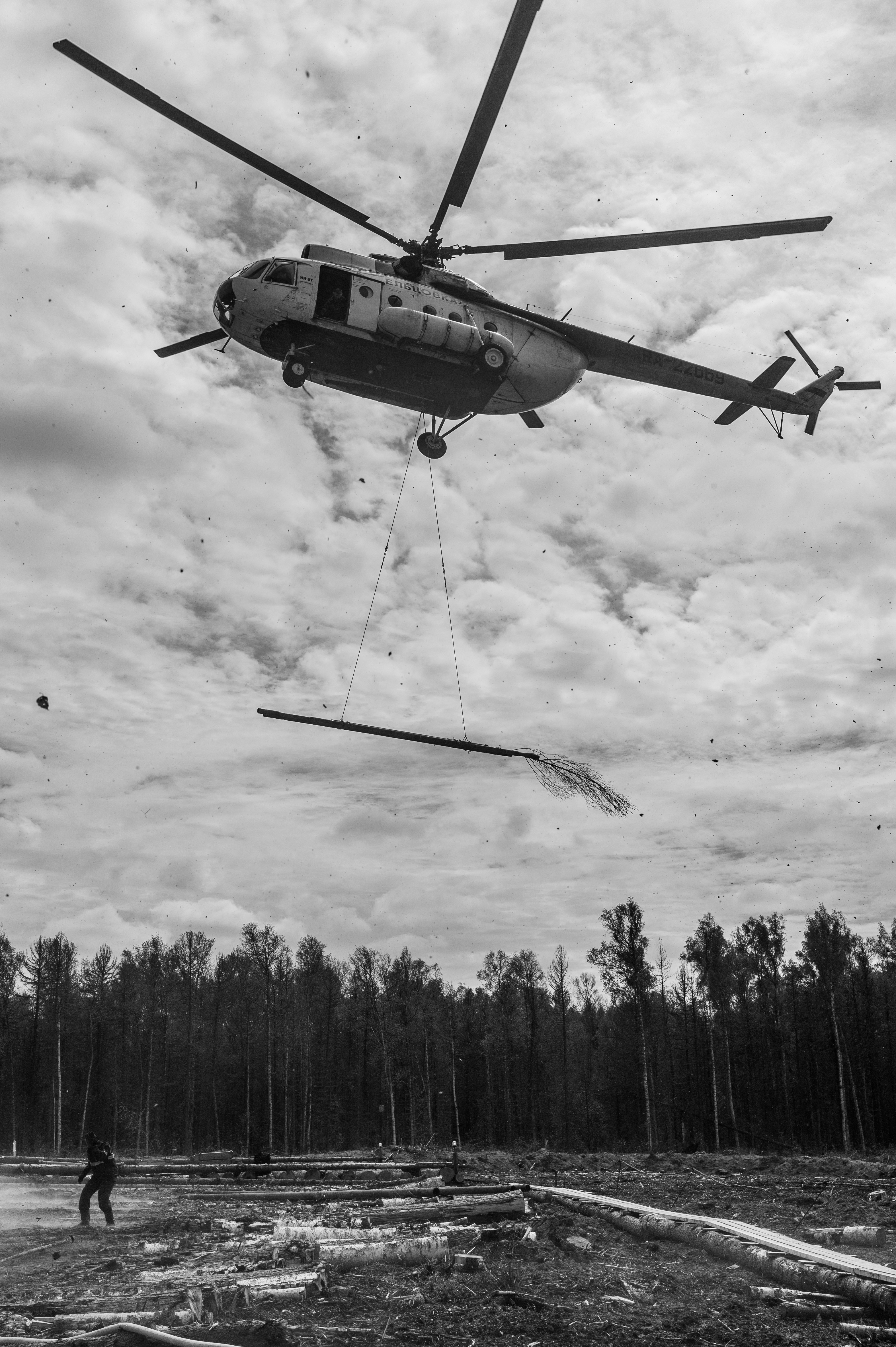 Михаил, снимок получился выразительным — динамика вертолёта, контраст неба и леса, композиция с диагональю кабеля и лесом внизу — всё работает. Можно чуть сильнее выделить тень под машиной, чтобы ощущался объём, но в целом — сильная работа.