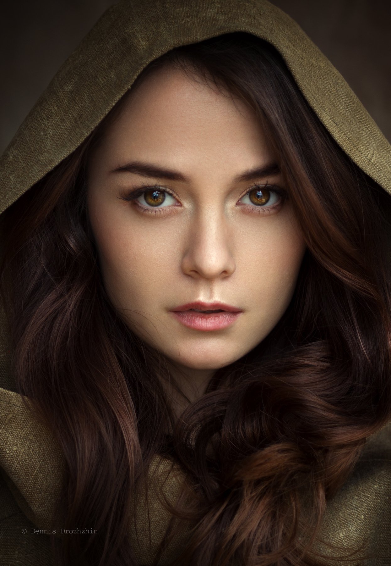 Фотограф Денис Дрожжин запечатлел Анастасию в атмосфере тишины и сосредоточенности. Капюшон из тёмной ткани мягко окутывает голову, подчёркивая контуры лица и глубину взгляда. Её глаза, словно проникающие в душу, удерживают внимание зрителя. Свет, падающий сбоку, создаёт драматические тени, придавая образу загадочность и внутреннюю силу. Это не просто портрет — это момент, застывший в тишине, где каждый штрих выражает характер и эмоцию.