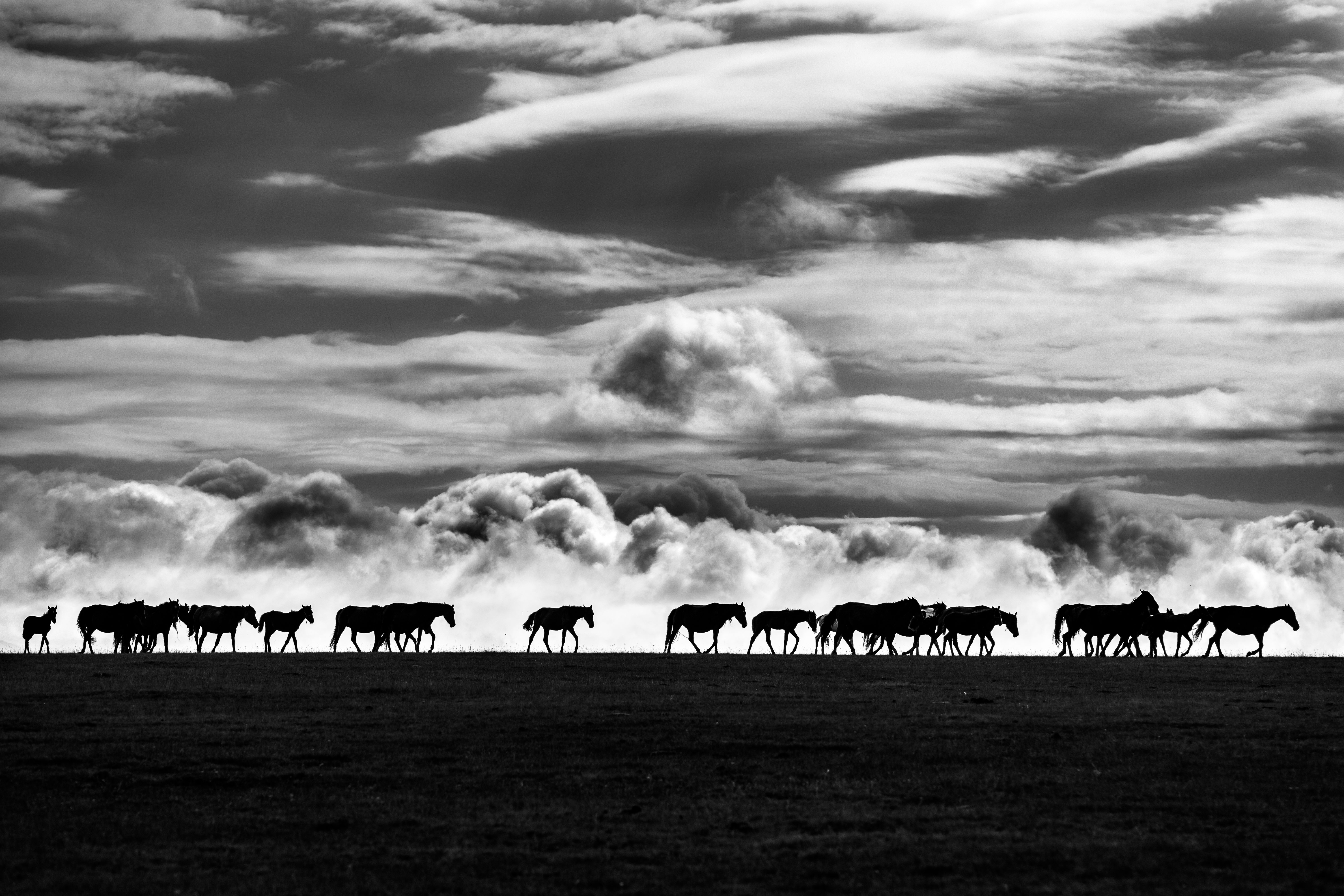 лошади, облака, утро, пейзаж, природа, пастбище, , Василий Шумкин