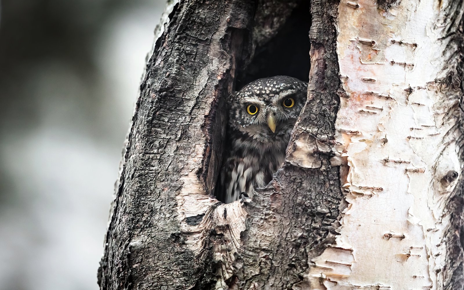 сыч, воробьиный сыч, хищная птица, птица, птицы россии, орнитология, дикая природа, фото охота, дикая птица, дикая природа, глаза, клюв, когти, дерево,белая, пестрая, редкая птица, красная книга, зима, дупло,, Victor Dubinkin