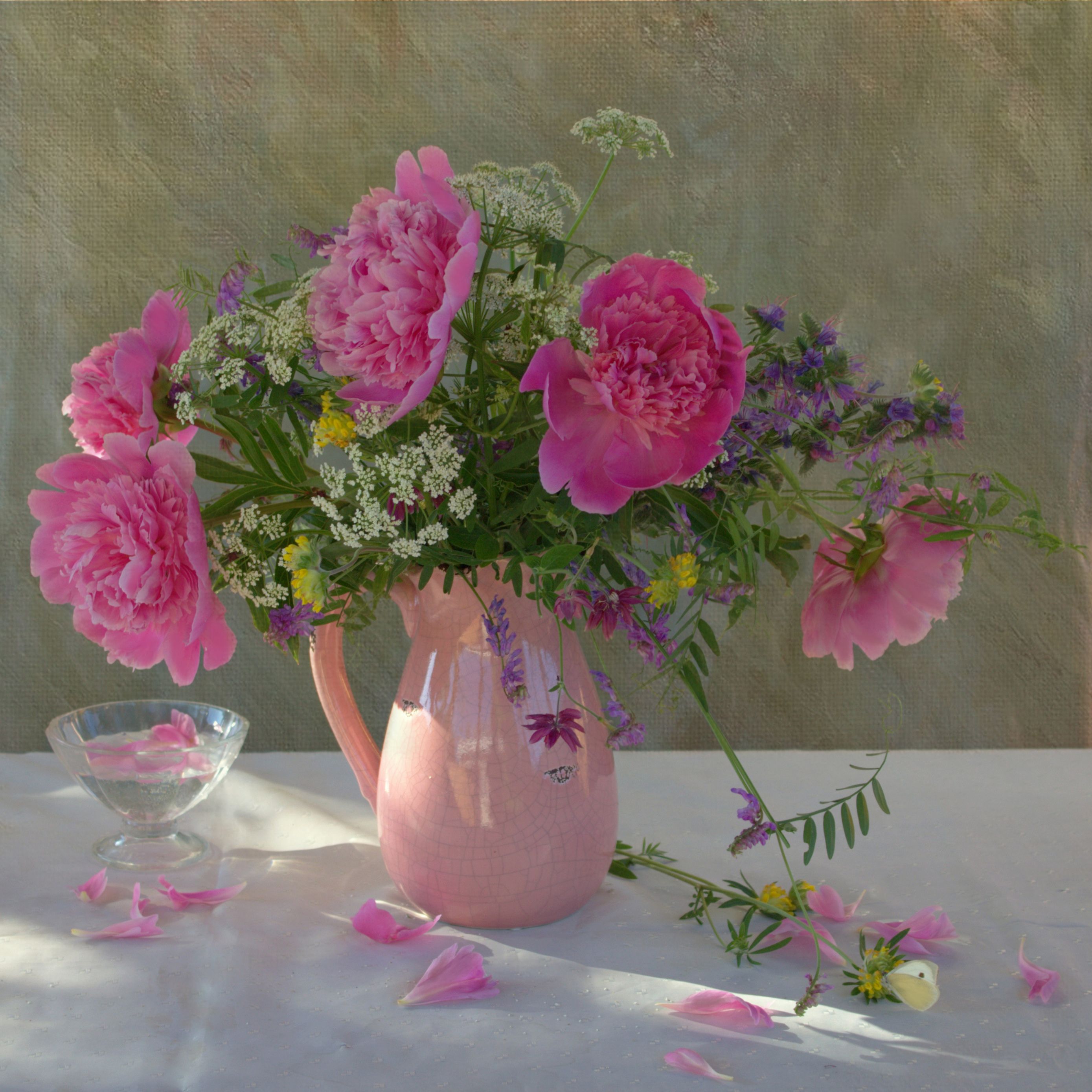 пионы, кувшин, бабочка, натюрморт, Хохлова Наталья