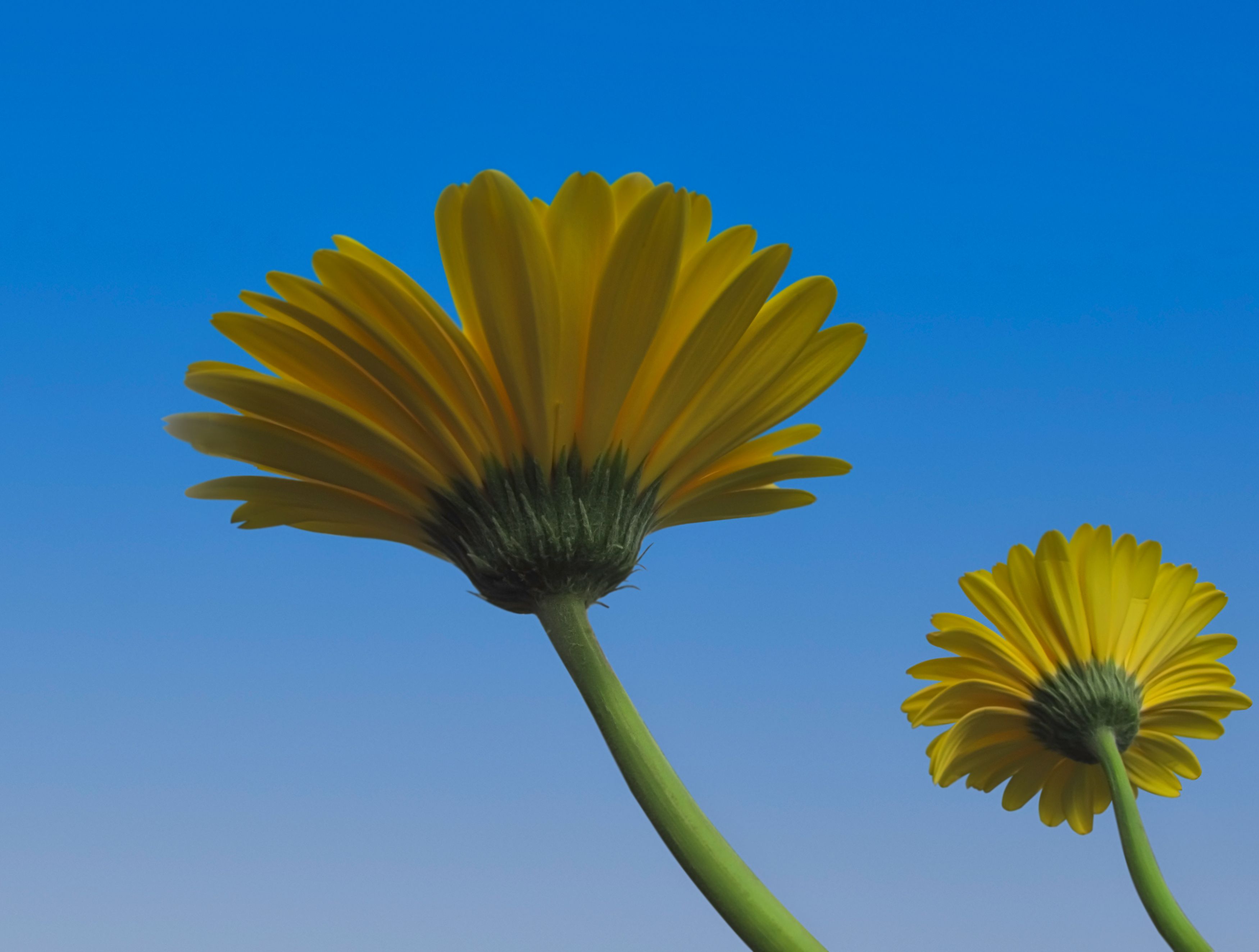 yellow, gerbera,  sky background, flowers, DZINTRA REGINA JANSONE