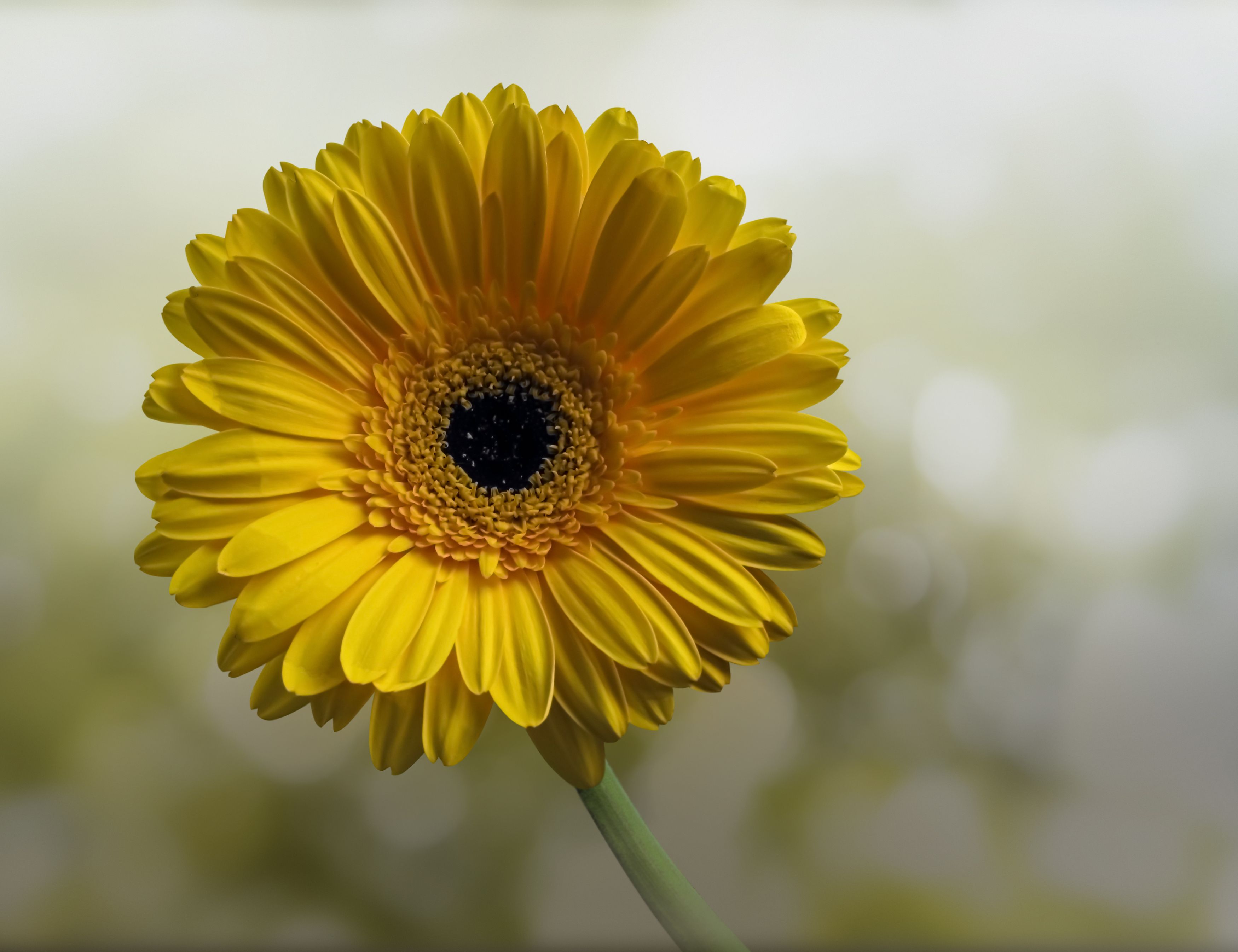 yellow, gerberas, blue, bokeh, background, DZINTRA REGINA JANSONE