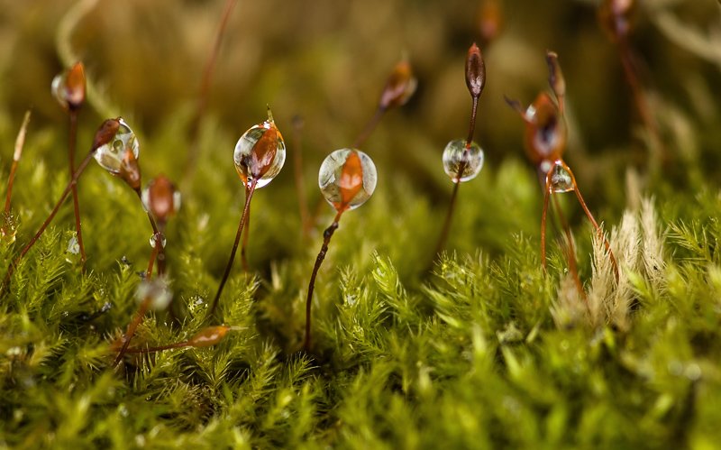мох, макро, капли, Юлия
