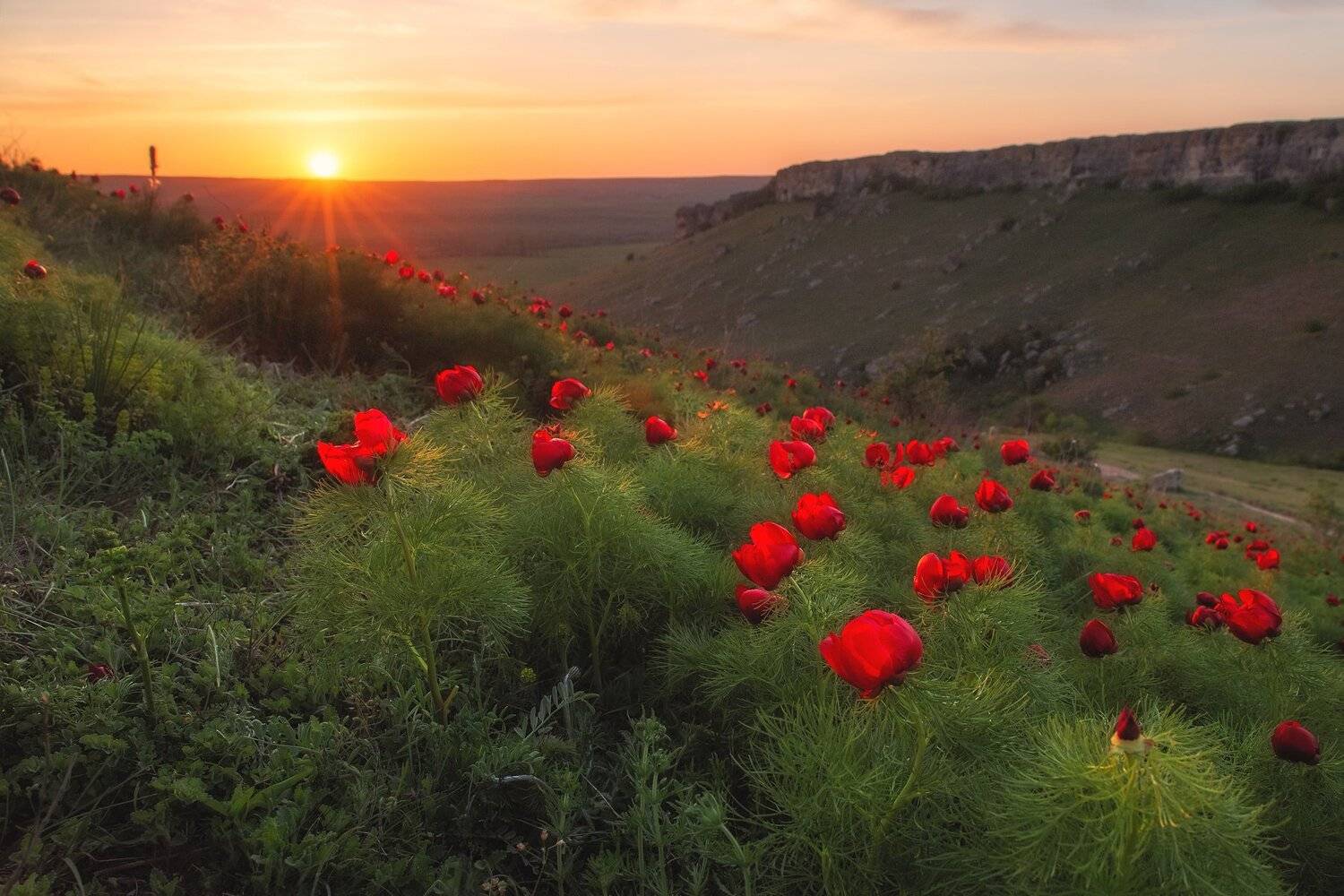 закатсолнцепейзажвеснагорыпионыцветыкрасотапутешествиекрымбелая скалаак-кая