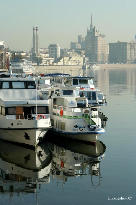 Утренняя прогулка по набережной...Осенний воздух, последние лучи солнца, дымка скрывающая берега реки, одинокие водные трамвайчики, стоящие у причала, а в городе пустынные московские улицы...