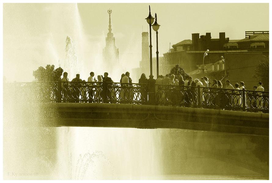 Юра спасибо, с тональность ты верно подметил, долго мурыжил, в цвете красная стена здания с правого края выпячивалась, думал резать, а затем решил перевести в монохром с желтизной, которая придает радостное настроние... А основное в работе композиция с легким мостиком (висячим т.е. без опор), брызгами фонтанов, и чуть размытой архитектурой...