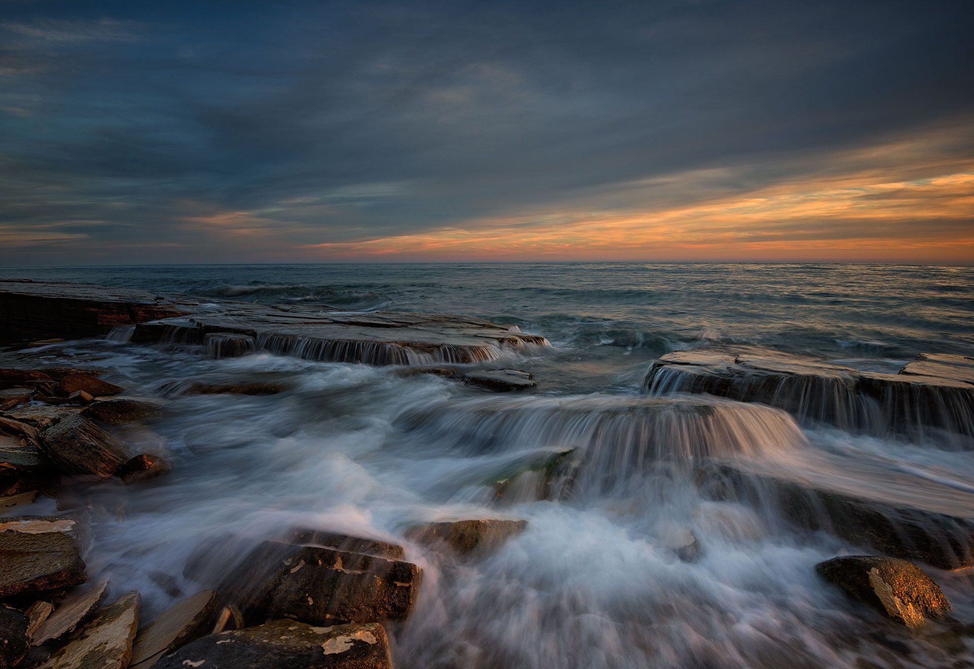 colorful, seascape, sky, sunlight, sunset, waterfall, Весела Маринова