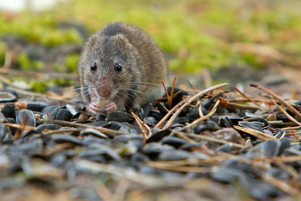 Снимать мышей особо не планировала, но вот, однажды летом, камень, где снимаю птиц посетили лесные полевки. И не просто одна какая-то случайно забежала, а семья: то папаша, благообразный и в меру наглый, то мамочка, замотанная детьми и злобными конкурентами.