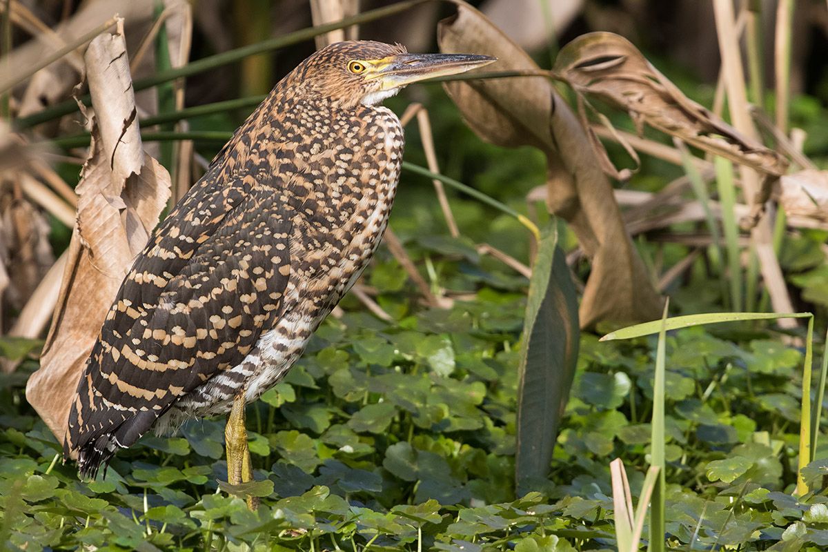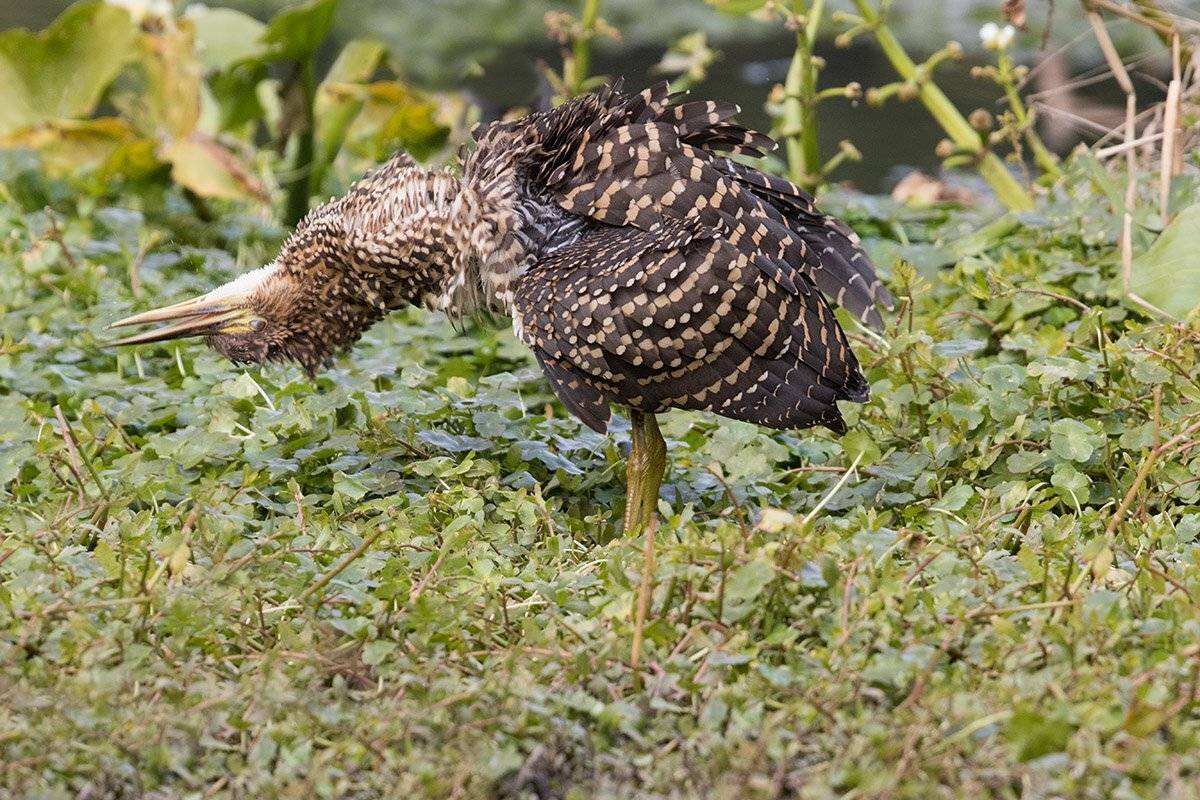 Молодая мраморная тигровая цапля по окрасу напоминает выпь. У выпи окрас с полосками на шее и спине, а у молодой мраморной цапли - "горошек"