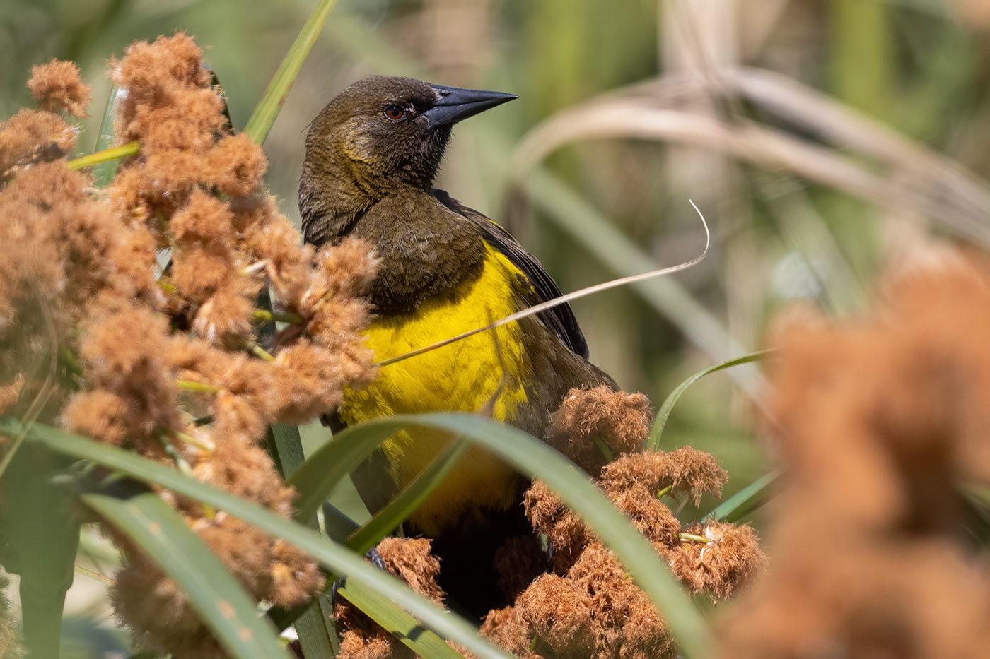 Желтобрюхий кассик (Pseudoleistes virescens), Pecho Amarillo, Brown-and-yellow Marshbird