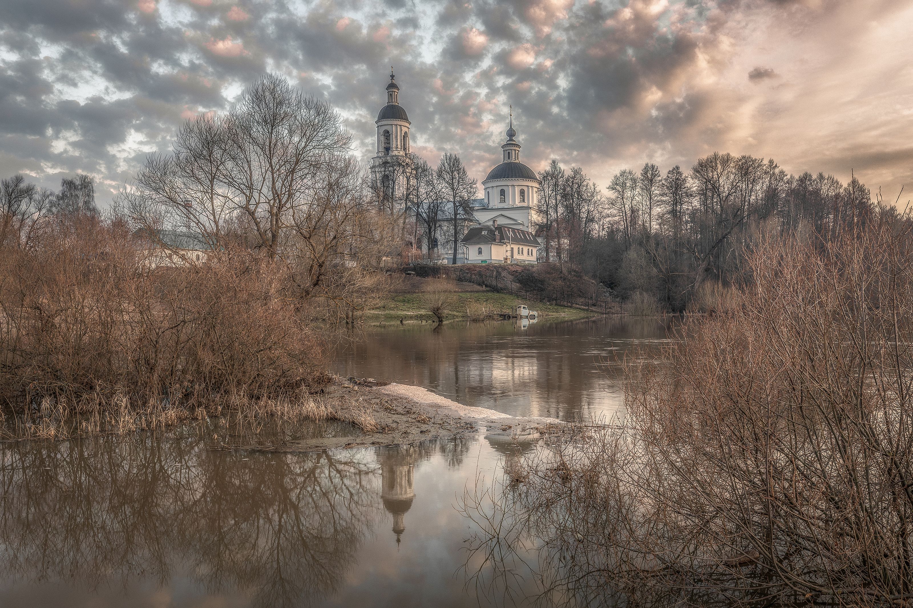 Снимок спокойный, сбалансированный. Отражение в воде удачно дополняет композицию. Цветовая гамма выдержана — приглушённые тона не отвлекают от главного объекта.