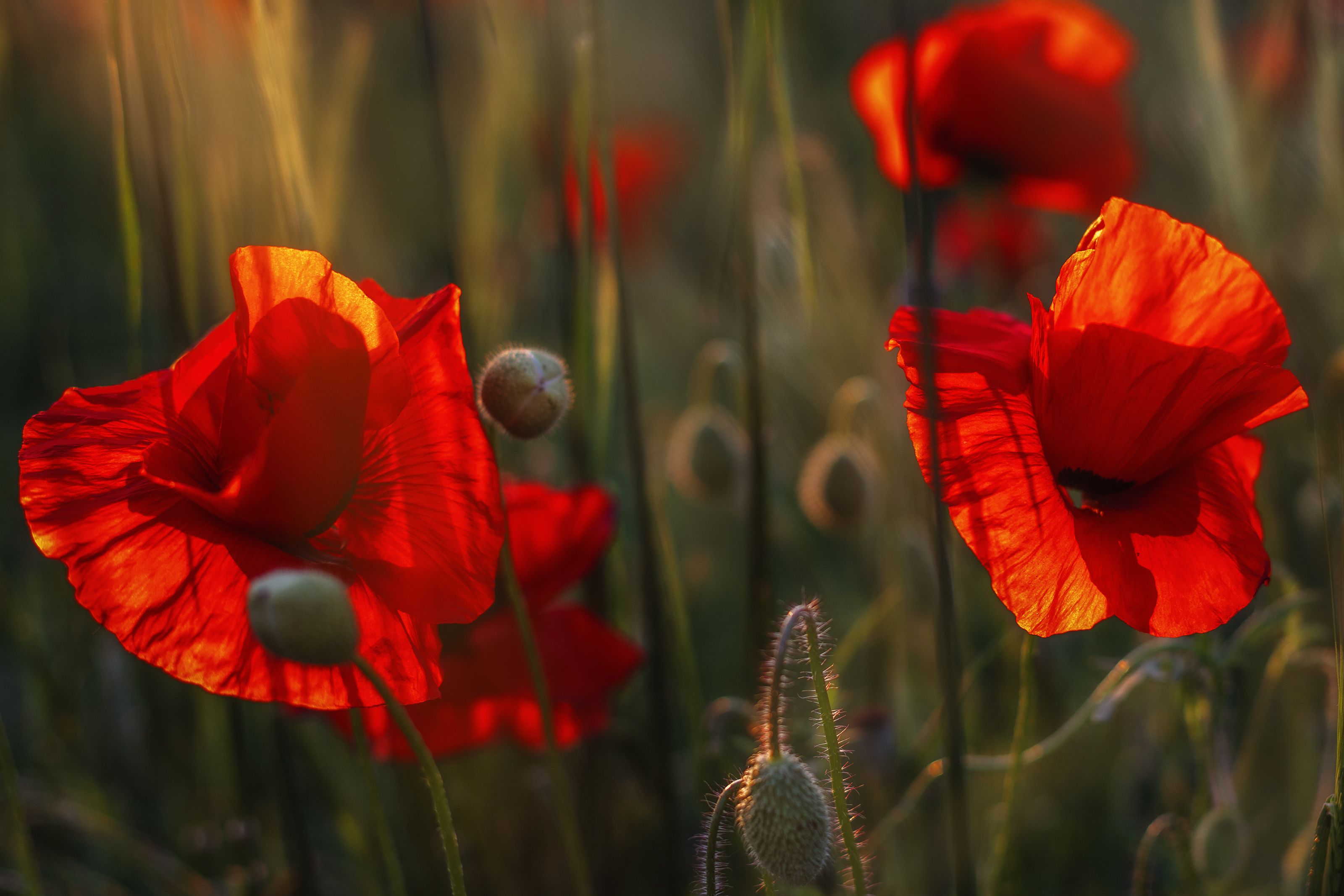 На фоне уходящего дня крымские поля оживают яркими красками. Красные маки, словно огоньки, освещают сумерки, создавая атмосферу тепла и спокойствия. Их лепестки мягко колышутся в легком ветерке, а зеленые стебли поднимаются к небу, подчеркивая грацию этих цветов. Этот момент передает красоту природы Крыма, где каждый цветок рассказывает свою историю жизни и красоты.